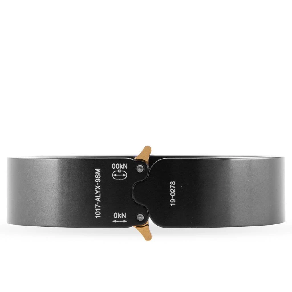 Based in New York City and produced in Italy, 1017 ALYX 9SM was created by Matthew M. Williams. Each piece highlights commitment to detail, innovation, and an emphasize to push new ideas forward. Slimline tailoring, luxurious fabrics, and aggressively elegant accessories offer consumers a complete wardrobe. Pictured is the 1017 Alyx 9SM Buckle Bracelet 13 in Black.