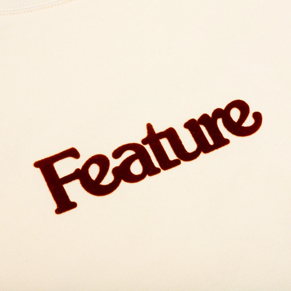 The FEATURE Academy Crewneck is the latest addition to our graphics apparel. Cut from 100% cotton, the crewneck is made from French terry, making it extremely soft + comfortable. Each piece is garment-dyed for even color coverage, and a flocked ‘Feature’ monogram is placed on the chest. The flocking process creates a velvet-like texture and adds subtle detailing. The ribbed trims are top-stitched to add structural integrity. While the crewneck is a standard fit, the design is made slightly oversized to allow for extra room in the shoulder + hip areas for comfort.
