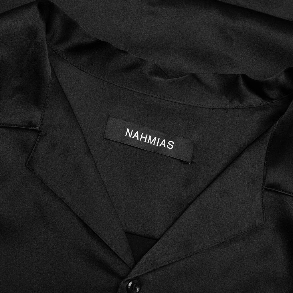 Nahmias introduces the Academy Silk S/S Button Down. The silhouette features screen-printed branding motifs at the chest. A spread collar is placed in addition to a button-down closure. The silk and elastane blend finishes the look.