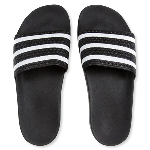 Represent the Adidas brand in its entirety with the Adilette Slides. Built for optimal comfort, the convenient footwear first debuted in 1970 as a shower slide for the German national football team. Featuring a contoured footbed, the design features a slip-on design with synthetic materials. The textile lining appears for a seamless transition and a 3-Stripe across the bandage upper.