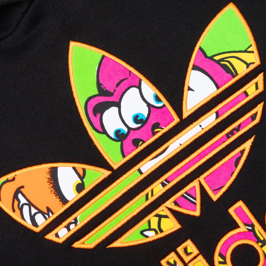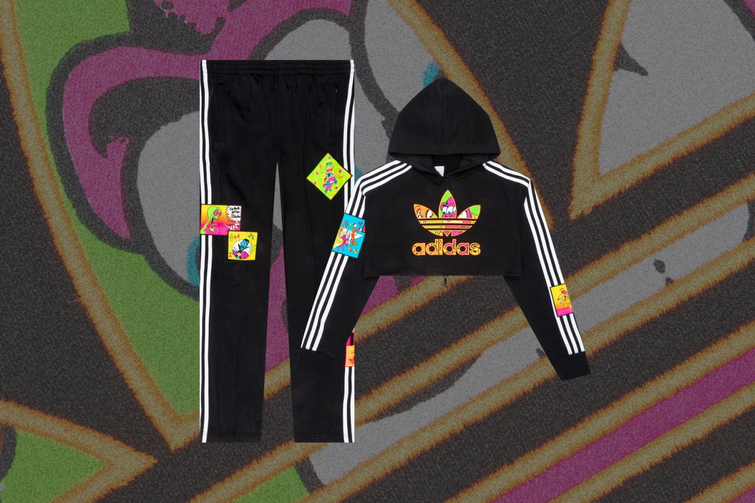 Adidas Originals and Jeremy Scott collide once again to introduce the Women’s Cropped Hoodie. Crafted from cotton, the comfortable long-sleeve cropped design features signature Adidas three-stripe detailing throughout the sleeve, while further branding is embroidered at the chest. The imagery is intertwined with bold and bright Jermy Scott graphics that appear in a patch-like manner throughout the rest of the silhouette.