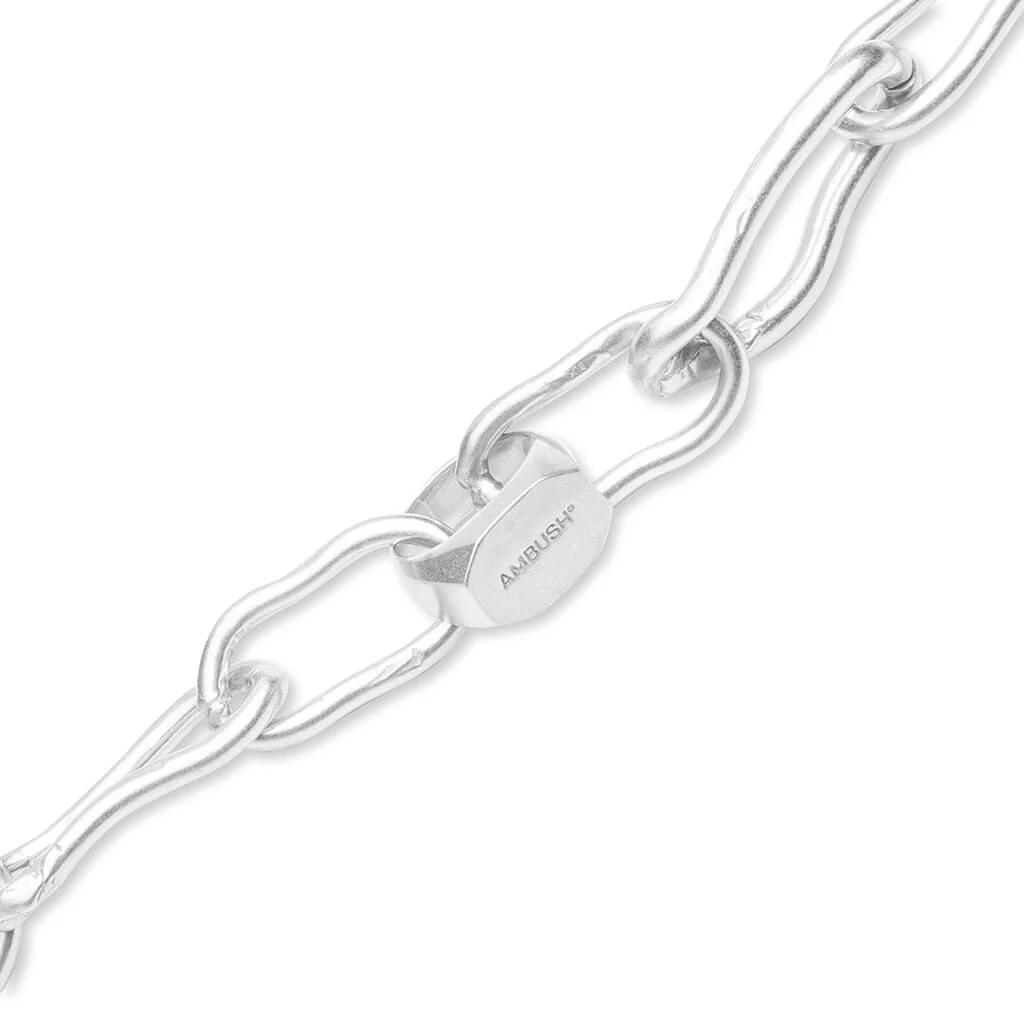 The contemporary design of the Mixed Chain Necklace draws emphasis on its varying shapes. Constructed with high-quality brass, the silver overlay matches perfectly with any style. Simplistic branding and clasp closure finish its premium design.