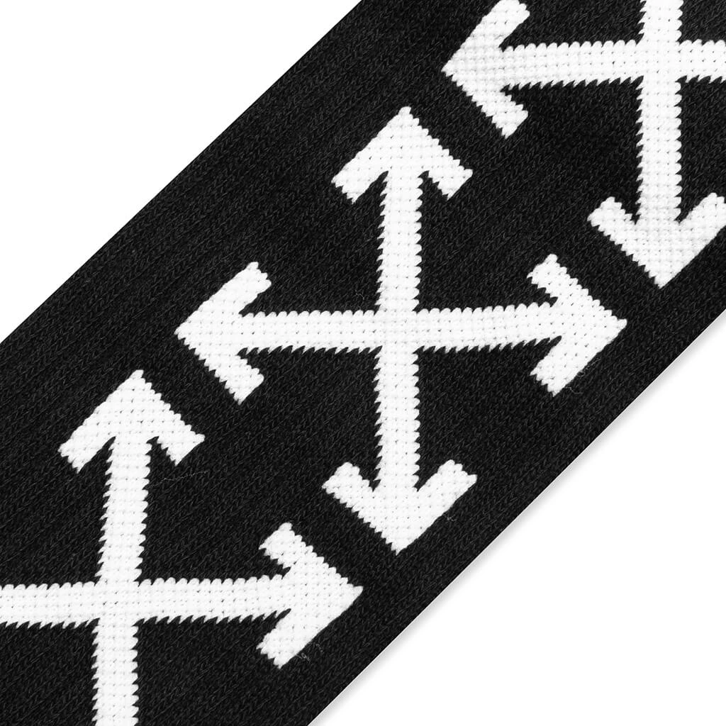 The well-known brand, Off White ℅ Virgil Abloh, continues to rise in popularity from season to season and continues to “define the grey area between black and white.” Off White ℅ Virgil Abloh has surpassed expectations and created a high-end fashion label that appeals to both streetwear consumers and those looking for progressive design. The brand focuses on high-end fabrics but in familiar streetwear shapes while using plain labels and industrial packaging. Pictured is the Off-White c/o Virgil Abloh Arrow Mid Length Socks in Black/White.
