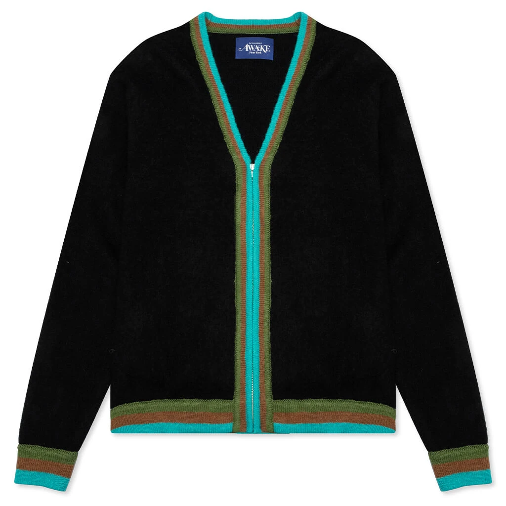 Contemporary streetwear label Awake introduces the Striped Mohair Cardigan. Crafted from a mohair-blend, the design features authentic striped trims that highlight the silhouette. The half-zip closure completes the look.