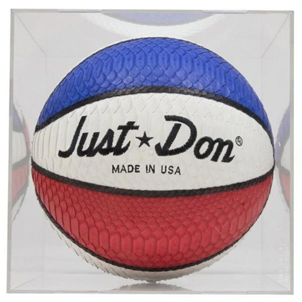 Founded in 2011 by Don C, Just Don is a luxury sportswear brand known for reinventing classic Mitchell & Ness snapbacks with 100% python, leather backed brim, and buckle closures. Pictured is the Just Don Basketball in Red/White/Blue.