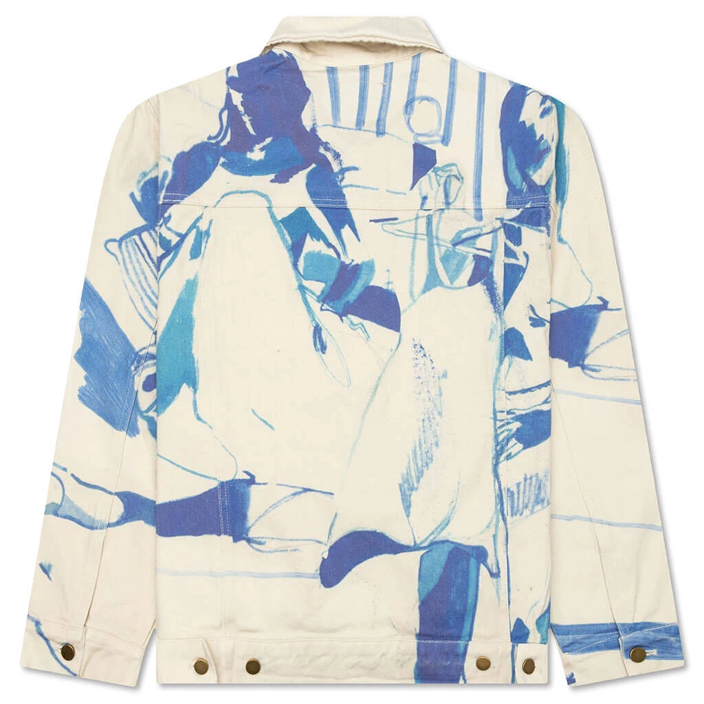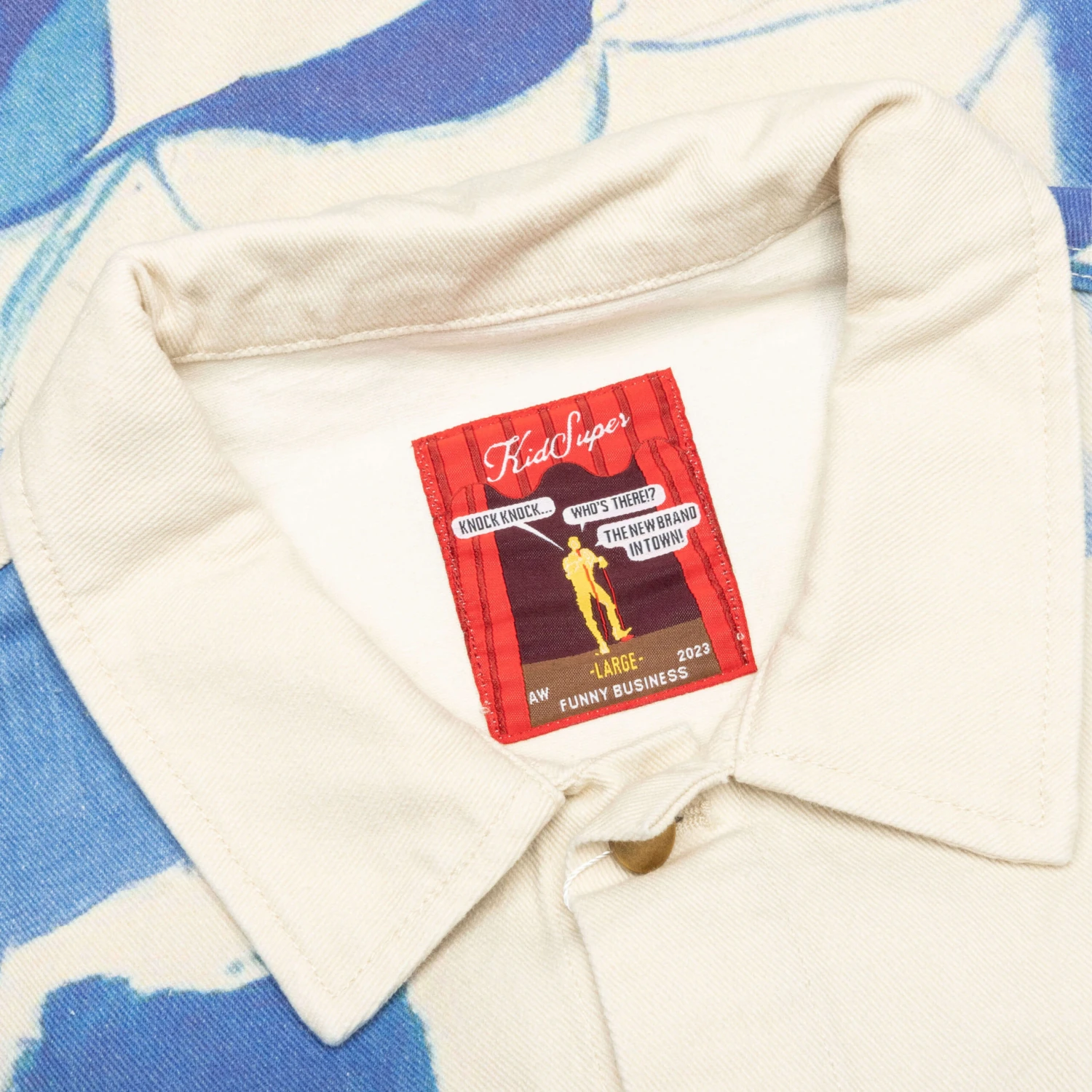 Composed of cotton, the KidSuper Bedroom Painting Denim Jacket makes an impression with its all-over paint-inspired graphics as well as its button-down closure and pointed collar. Chest pockets and hand pockets can be found, finishing up the rest of the look.