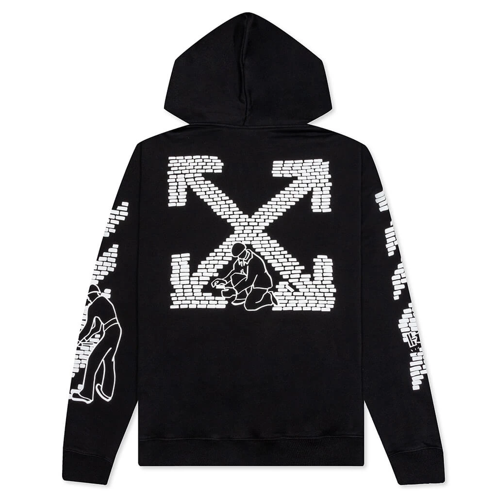 Off-White’s latest arrivals include the Bricks Slim Hoodie. Made for a slim fit, the design is cut from cotton and features a drawstring hood and ribbed trims. Screen-printed branding is seen at the front, while the brick-inspired graphics at the sleeves and rear wrap up the look.