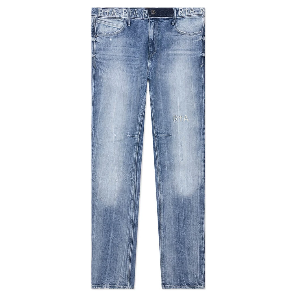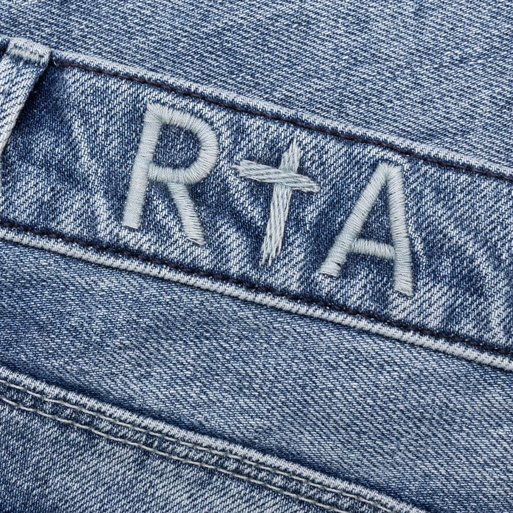 RtA’s signature denim offerings introduce the Bryant Jean. Composed of cotton and lycra, the silhouette is made for a crease throughout the wash. Signature stitching is seen throughout, while an embroidered RtA logo is seen along the waistband. The zip fly, five pocket design, and reinforced belt loops wrap up the design.