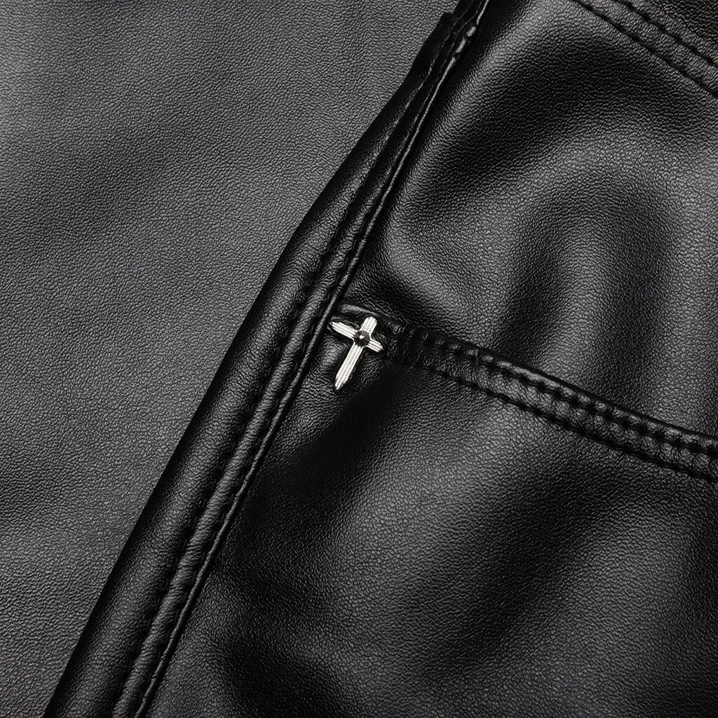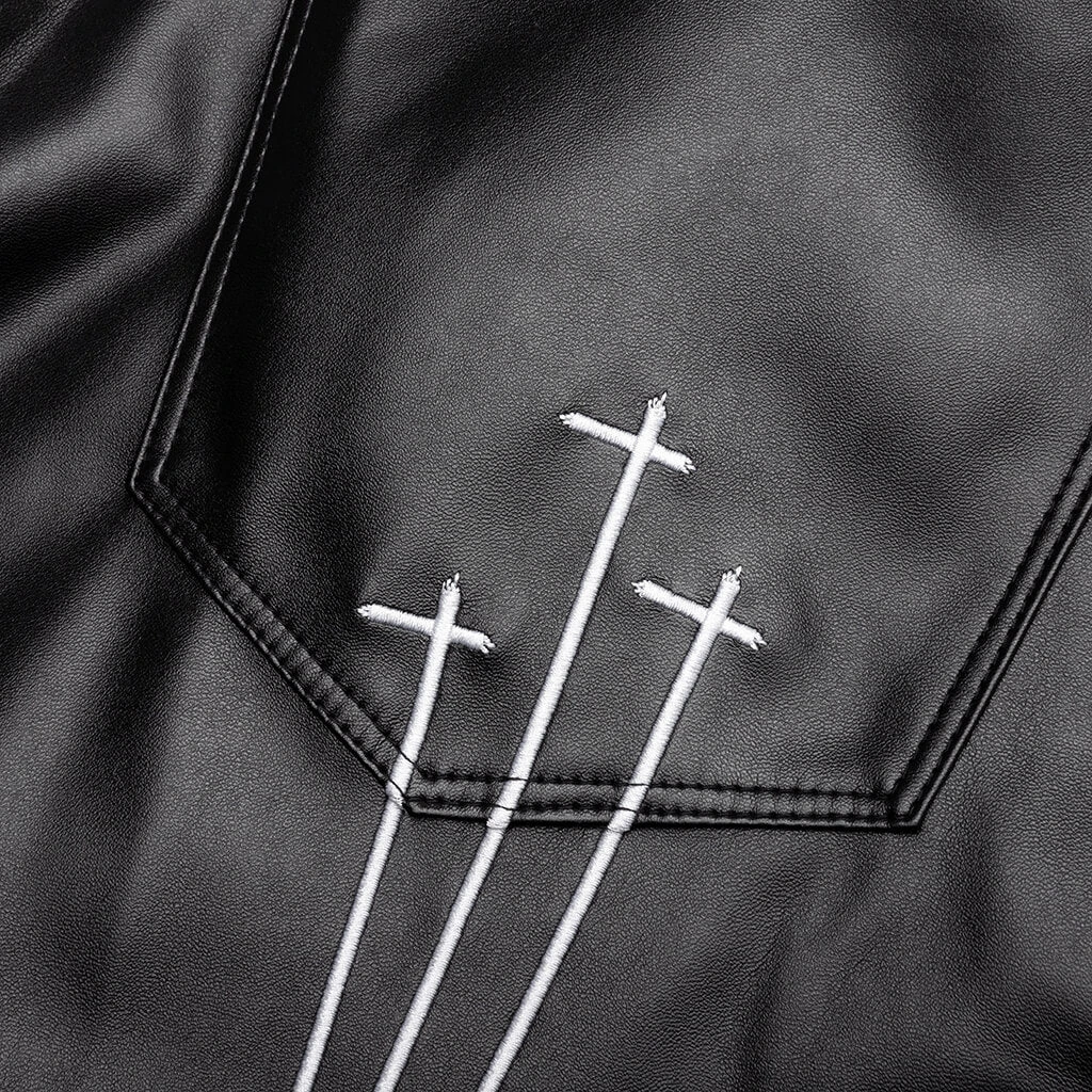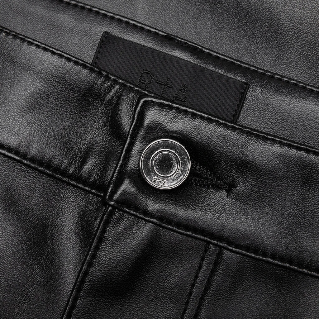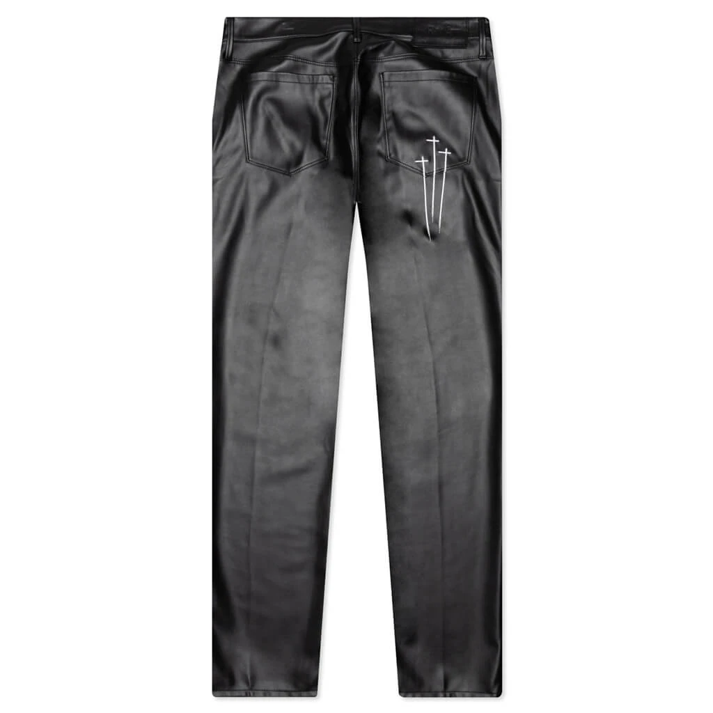 Upgrade your streetwear apparel rotation with the RtA Bryant Pant. Composed of polyurethane and polyester, the pant takes on a skinny vegan leather aesthetic. An embroidered motif can be seen across the left leg and a triple cross at the rear.