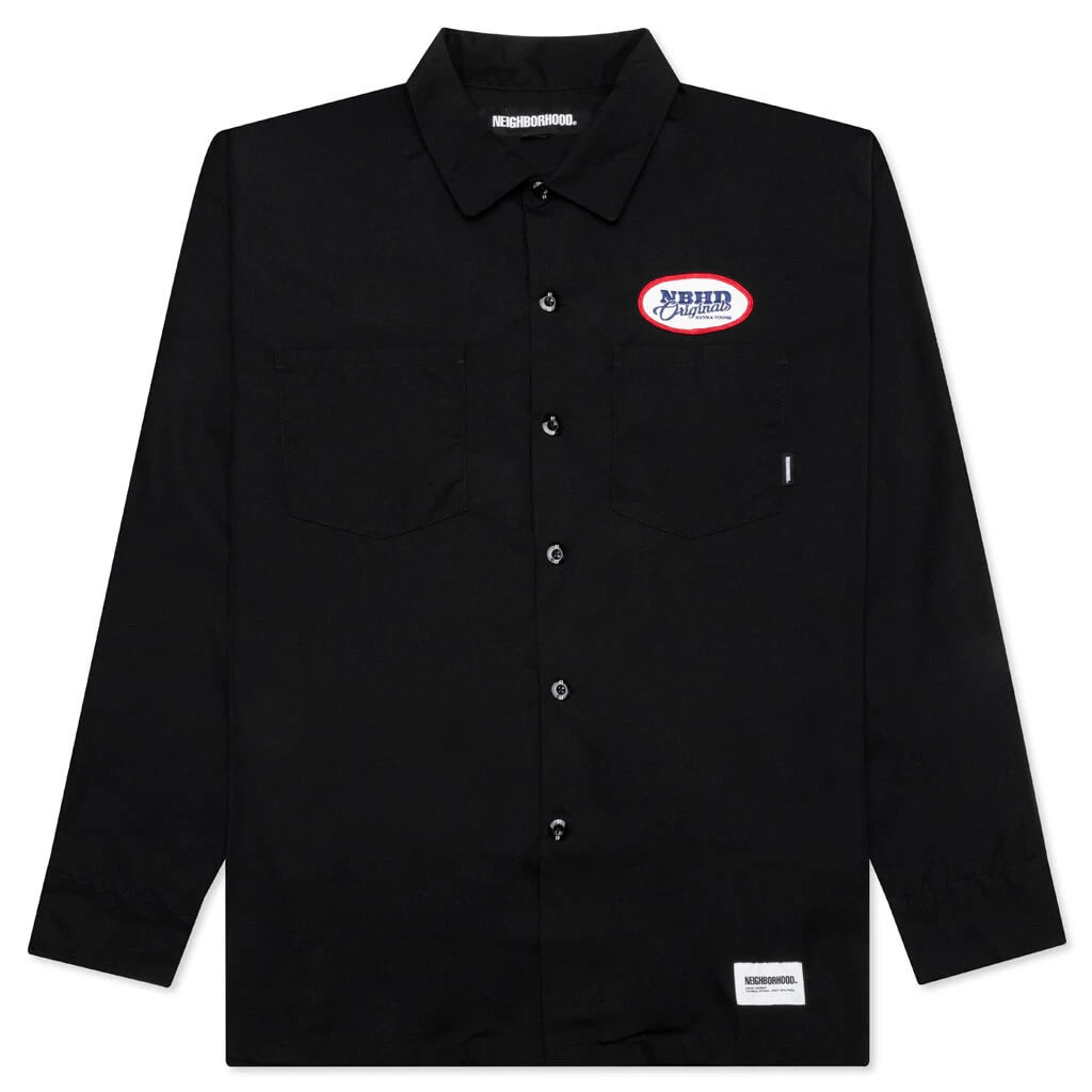 The Neighborhood Classic Work L/S Shirt makes an impression with its blend of cotton and polyester. The silhouette features home base patch pockets at the chest as well as a graphic at the rear. The brand label on the hem paired with a clip tag, button-down closure, pointed collar, and chest pockets finishes up the rest of the design.
