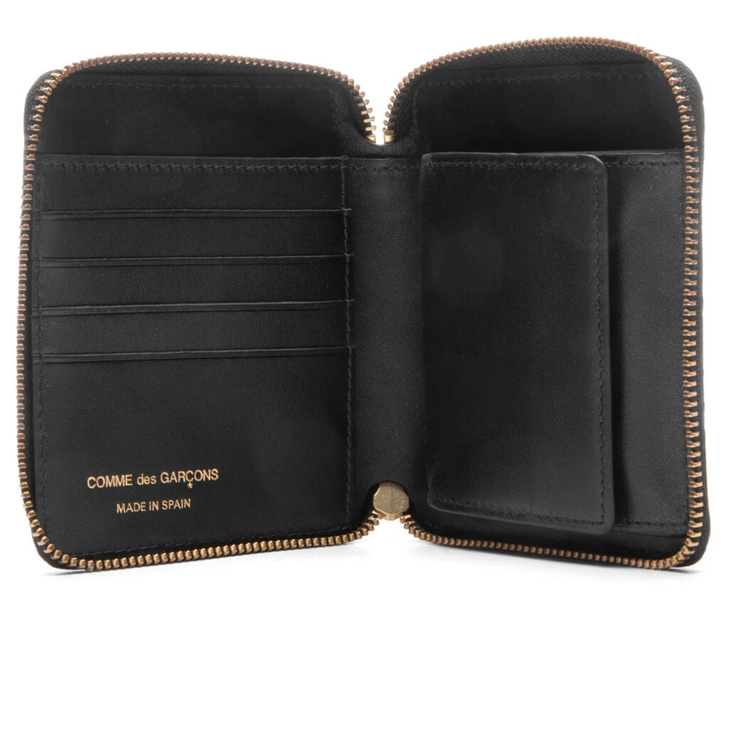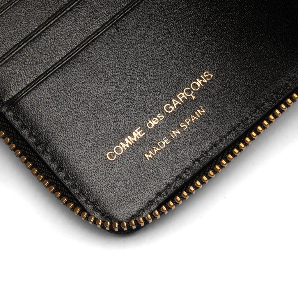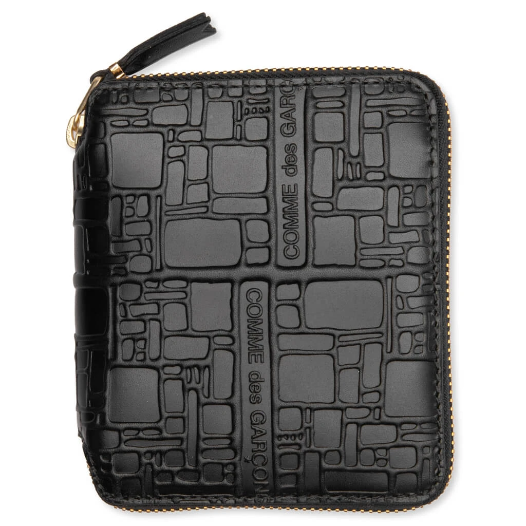 The Comme des Garcons Embossed Logo Wallet makes an impression on any accessories collection. The design is composed of cowhide leather and utilizes a zip closure and four card slots. The coin pocket and note sleeve finish the design.