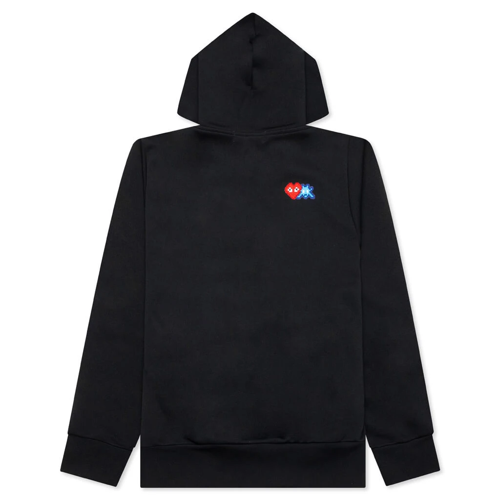 Taking on a cotton construction, the Comme des Garcons PLAY x Artist Invader Full-zip Hoodie is the latest release in the collection. A drawstring hood is placed, while side welt pockets paired with the ribbed detailing offer added dimension. The signature embroidered pixelated heart motif finishes the look.