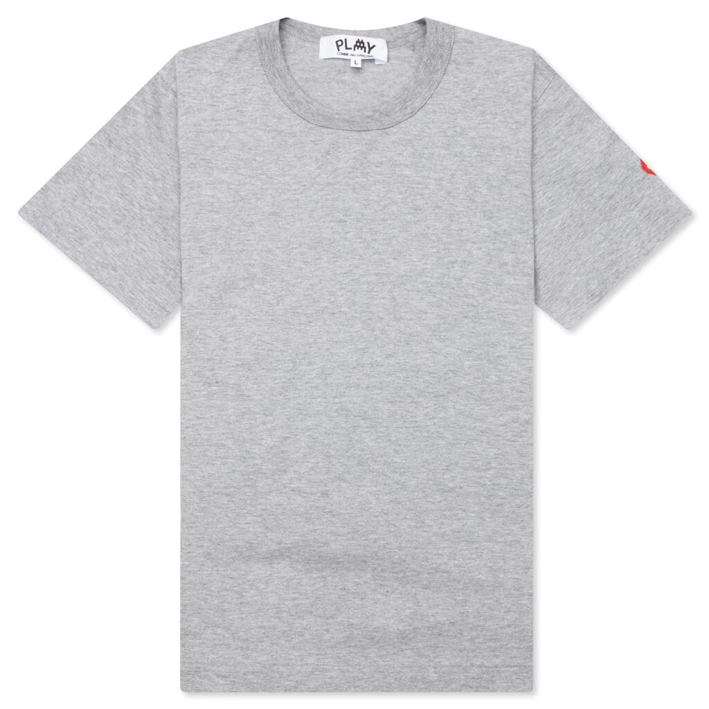 The Comme Des Garçons PLAY x The Artist Invader collection expands as they introduce the Womens S/S Tee. Composed of 100% cotton, the signature embroidered pixelated red heart motif is placed on the front of the tee. A ribbed crew neckline and straight hem wrap up the look.Â
