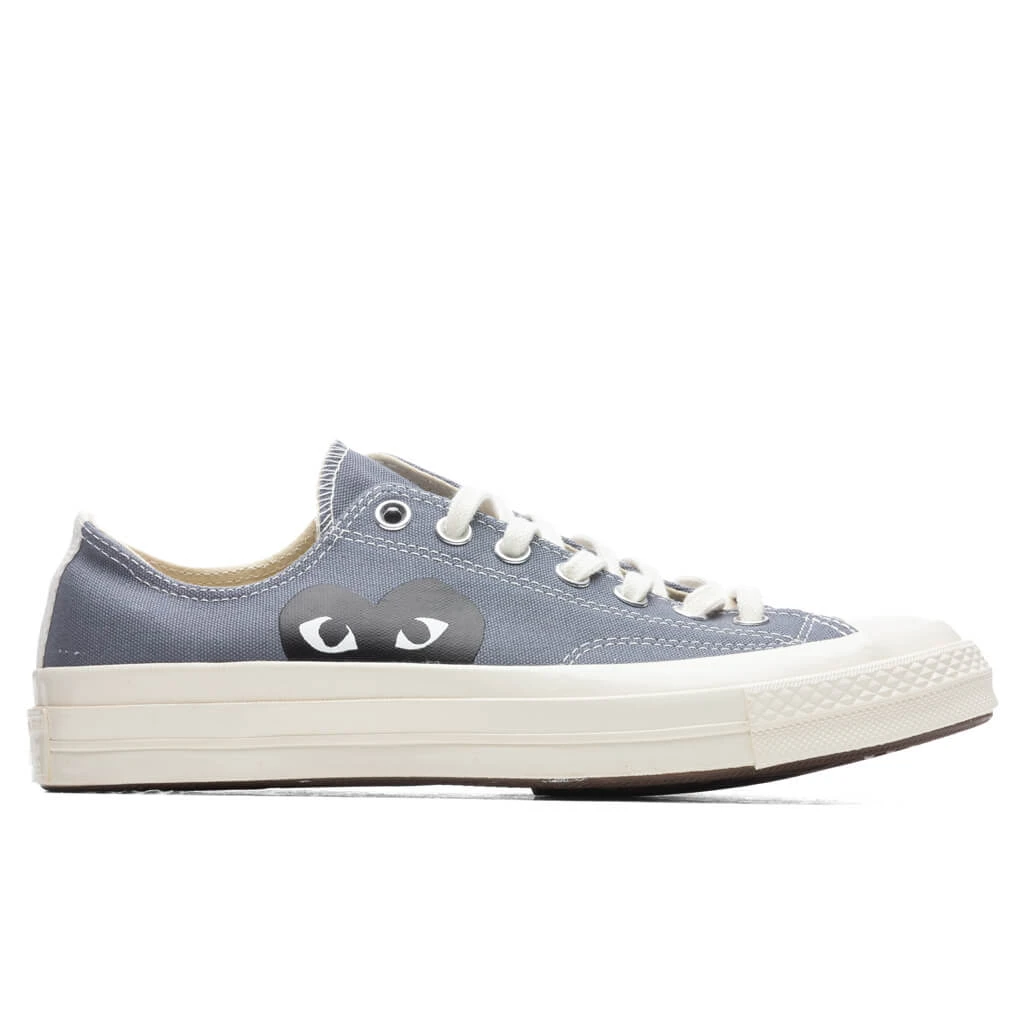 Comme des Garçons PLAY and Converse continue their iconic and notable collaboration by introducing the All Star Chuck ‘70 Low. The silhouette features a canvas design that includes a lace-up closure. The main attribute includes the signature bug-eyed red motif incorporated throughout the design. Complete with a rubber toe box and outsole, the design provides a sleek and long-lasting finish.