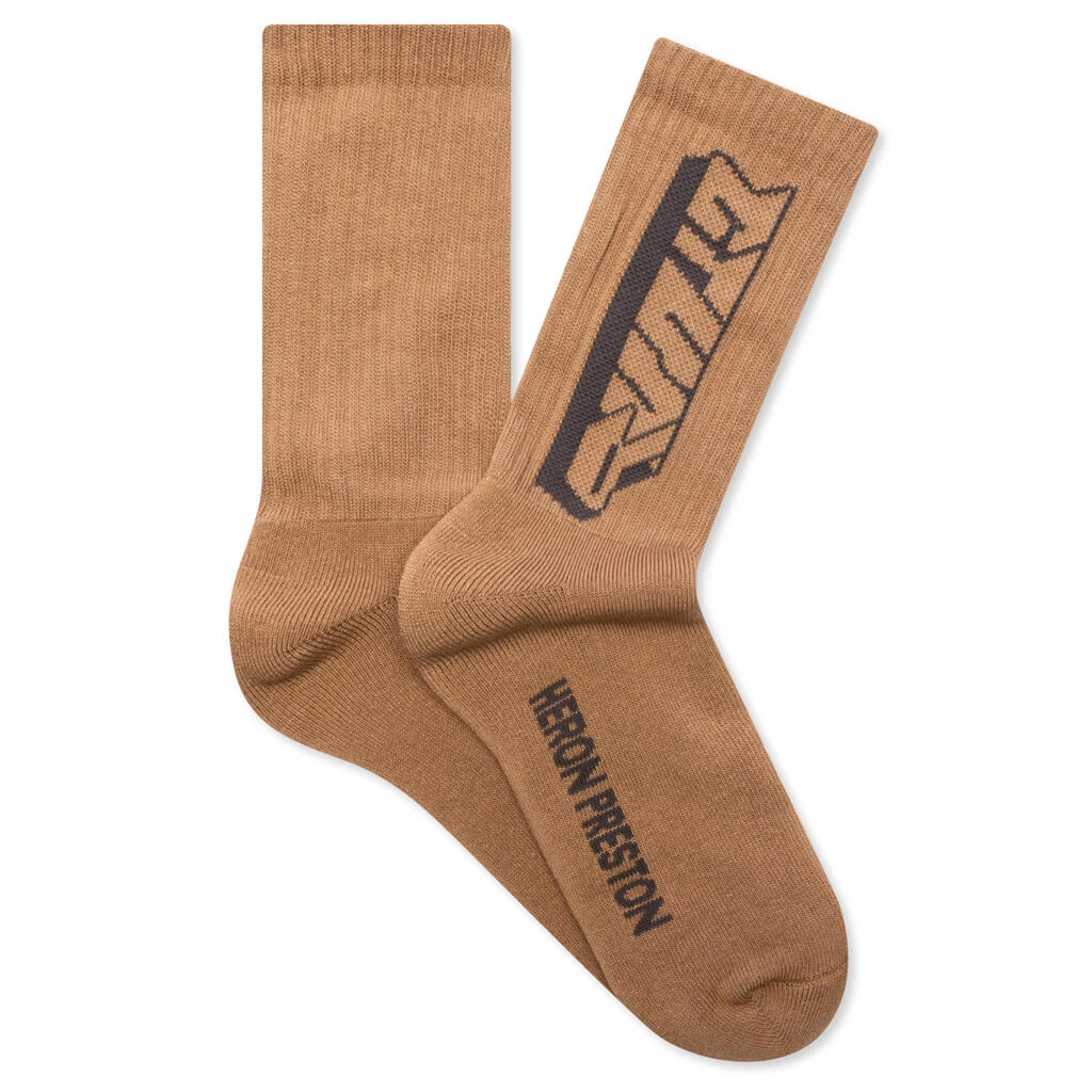 Featuring a cotton and elastane blend, the Heron Preston CTNMB Spray Long Socks make a statement in any collection. The design features ribbed cuffs in addition to engineered branding at the ankles and footbed.