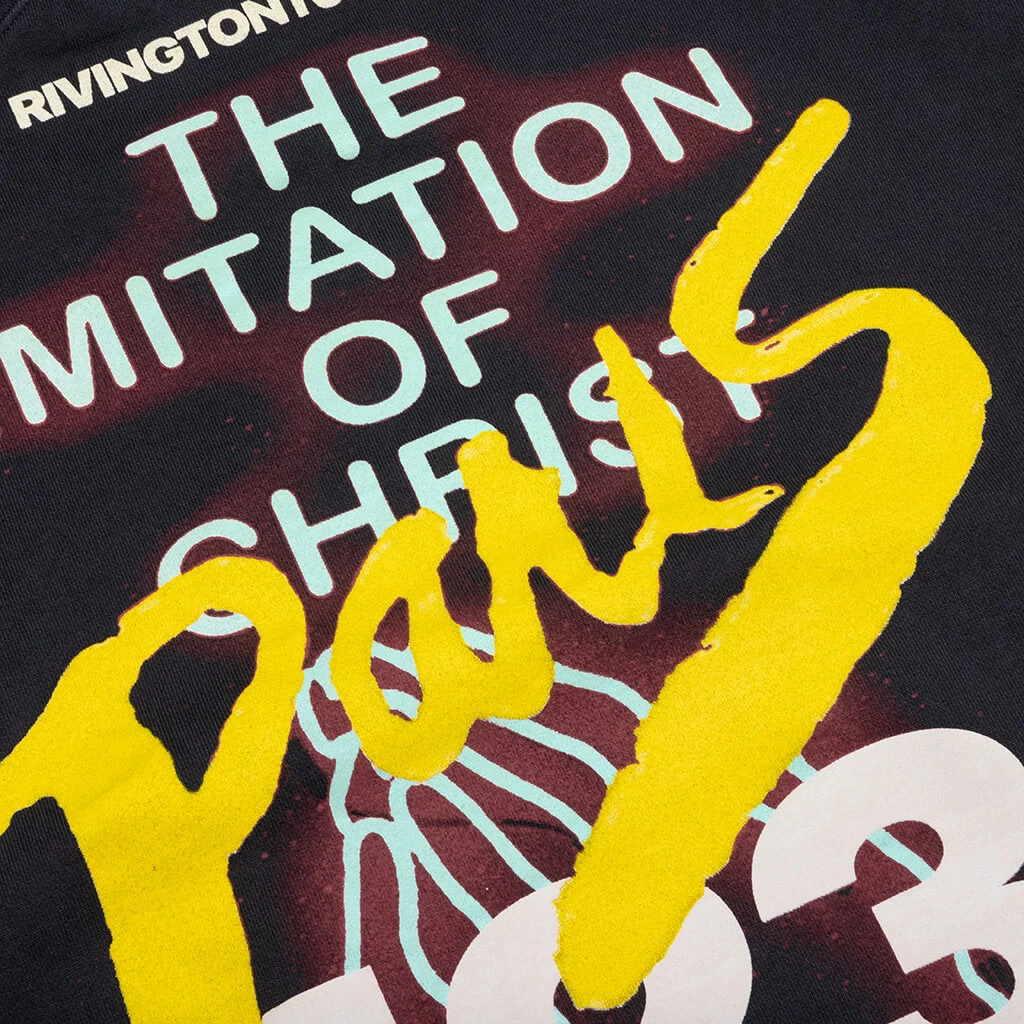 The CVA Imitation of Paris Hoodie from RIVINGTON roi Rebis’ newest collection of streetwear is inspired by the creators time spent growing up in New York City and living in Los Angeles. The collection features a variety of oversized hoodies and tees sporting bold graphics. This hoodie is constructed of 100% cotton in Los Angeles and has branded screen printing on the chest as well as the back. The design is constructed with a boxier fit in mind.Â
