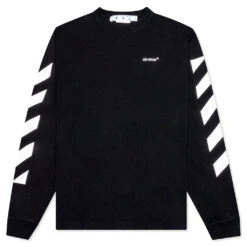 The Diag Helvetica Skate L/S Tee from Off-White is part of the brand’s latest apparel delivery. This silhouette is crafted from authentic cotton and incorporates ribbed detailing at the neckline and cuffs. Screen-printed branding resides at the chest, while diagonal prints at the sleeves spotlight the rest of the look.