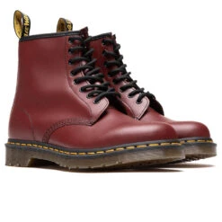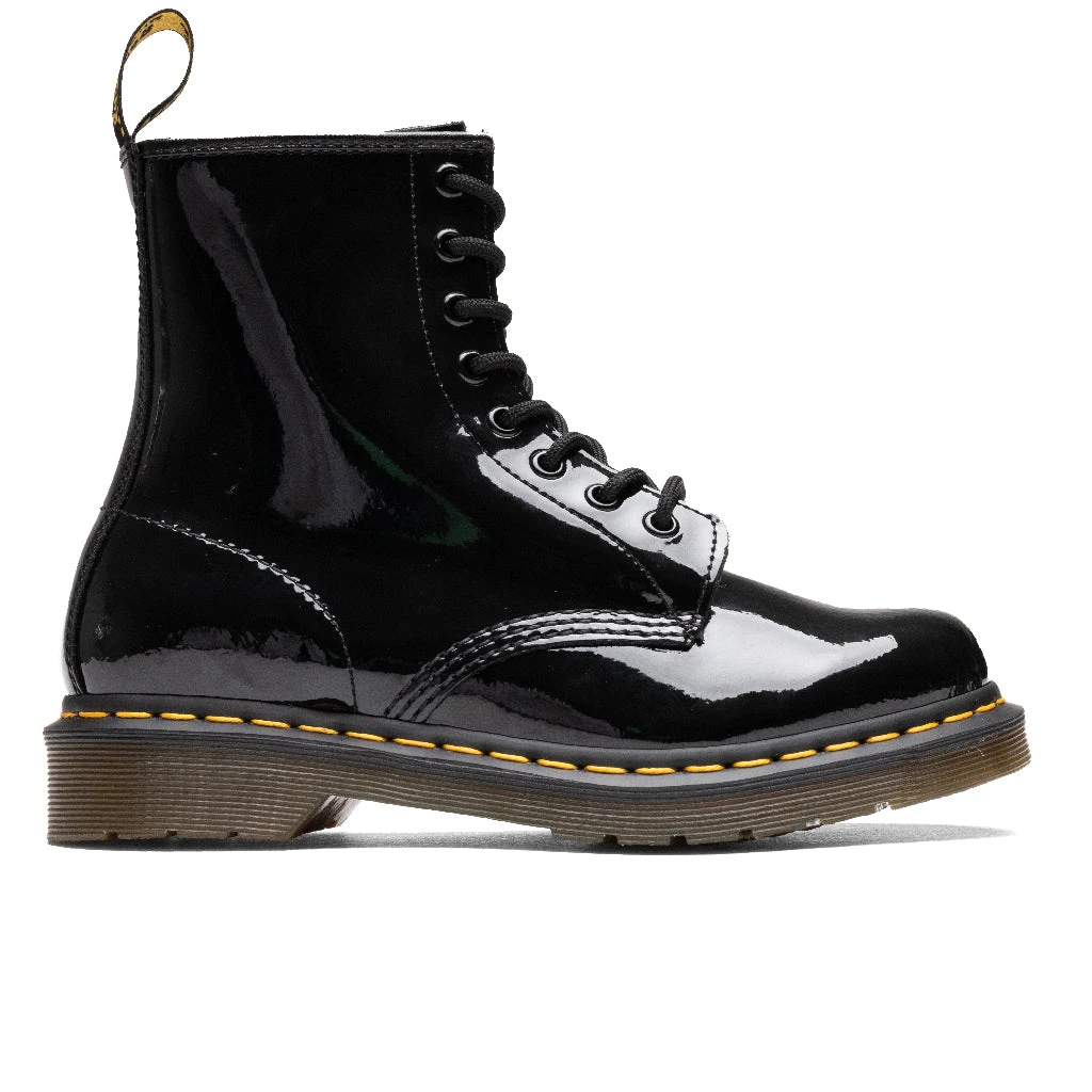 ’s boot with a small twist. The shiny texture is hard to miss adding a punk and alternative vibe. The chunky rubber sole adds an elevated look to the boot not taking away from the air-cushioned insole. The leather upper is accented with yellow stitching known throughout the brand.