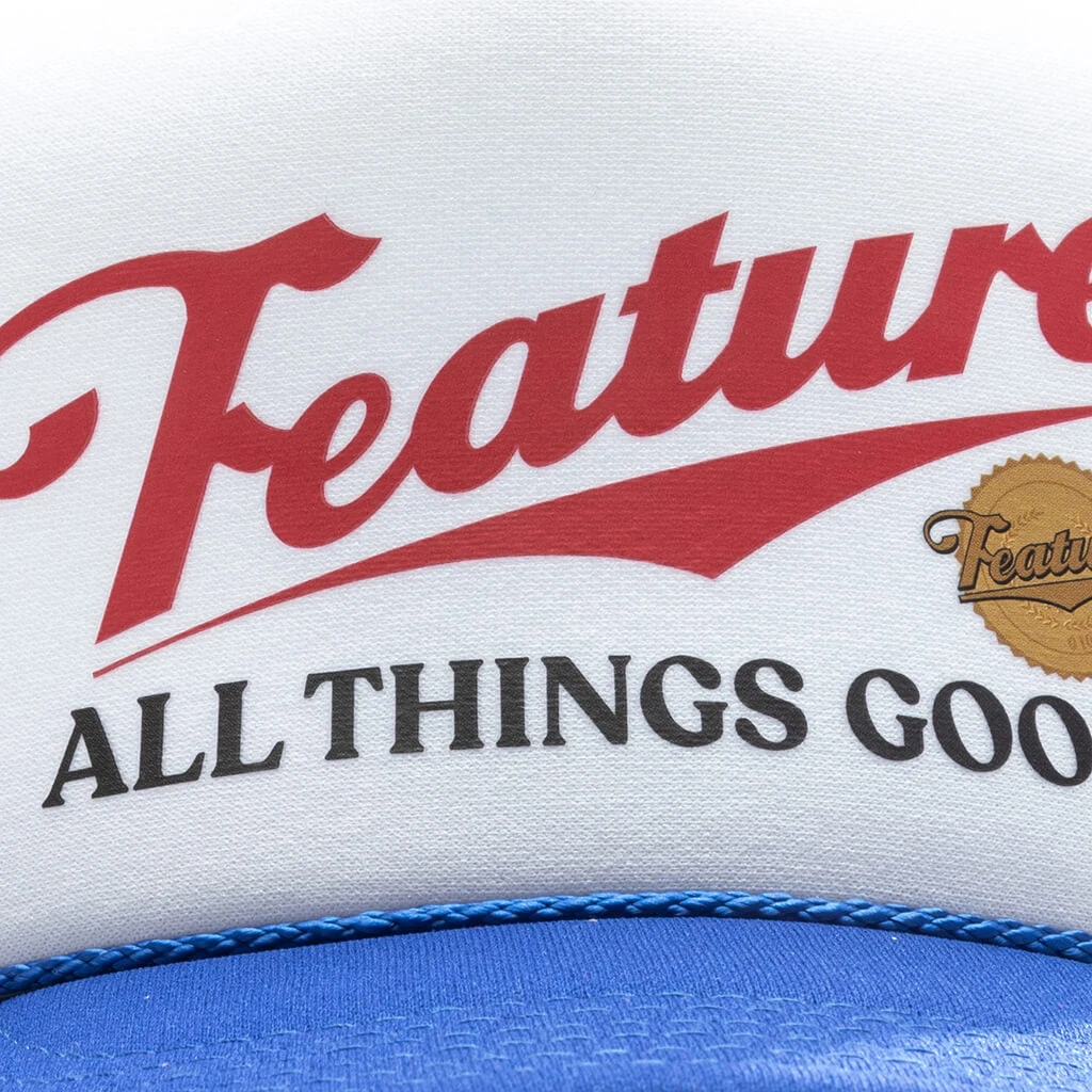 Taking on a vintage aesthetic, our exclusive FEATURE Draft Trucker Hats make an impression on any headwear collection. The design features a polyester foam construction as well as a structured front. A curved brim is placed, while the mesh detailing can be found at the sides. An adjustable snapback closure is also placed at the rear. On the face of the trucker hat is a screen-printed ‘FEATURE’ logo hit as well as our ‘All Things Good’ mantra.