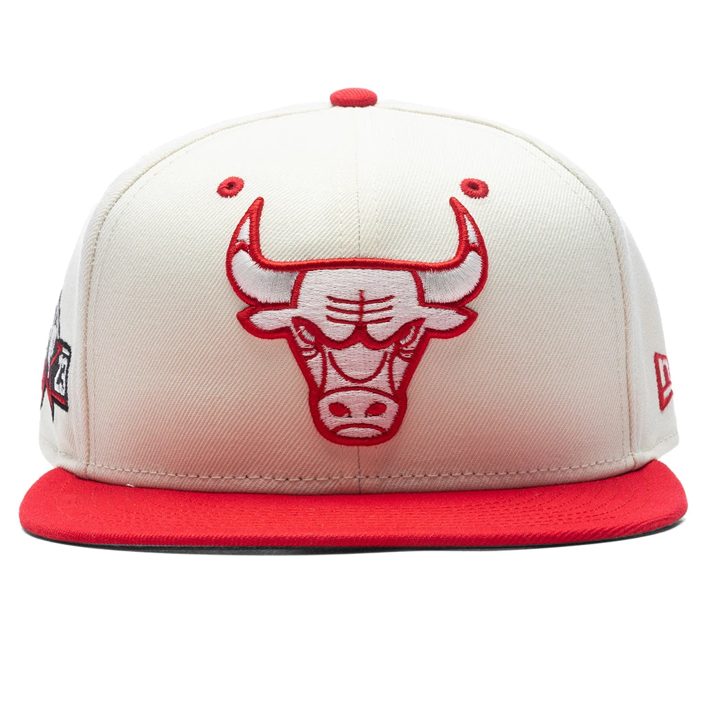 FEATURE joins New Era in spotlighting the iconic Chicago Bulls on the 9FIFTY Snapback. Composed of polyester, this snapback hat incorporates woven eyelets at the crown for added breathability. A contrasting flat brim is placed, while a team logo is embroidered on the face. An NBA All-Star patch can be found on the right side, while a New Era flag is seen on the left. The adjustable rear closure finishes the rest of the look.