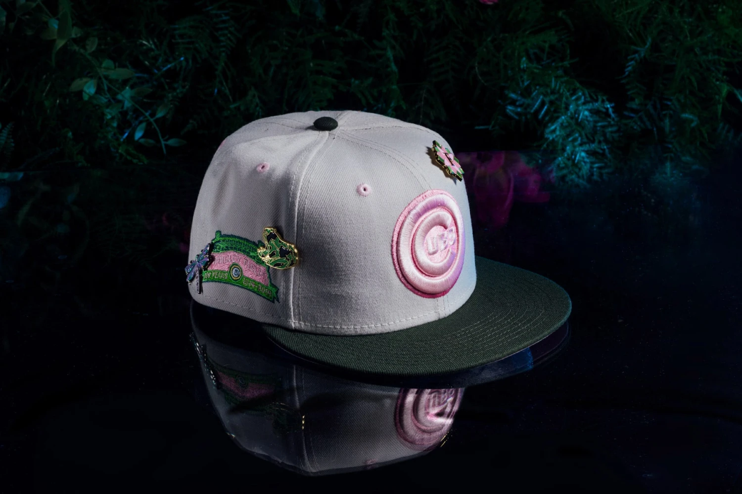 Representing purity, beauty, and prosperity, the FEATURE x New Era 59FIFTY Fitted ‘Lotus’ is inspired by the iconic lotus flower. The silhouette is cut entirely from polyester and incorporates woven eyelets on the crown for a breathable touch. A contrasting flat brim offers further dimension to the design. The silhouette features a raised and embroidered team logo at the face, along with a championship patch at the right side. An embroidered FEATURE script logo can be found at the rear. The hat is finished with three lotus-inspired pins for a finishing touch.