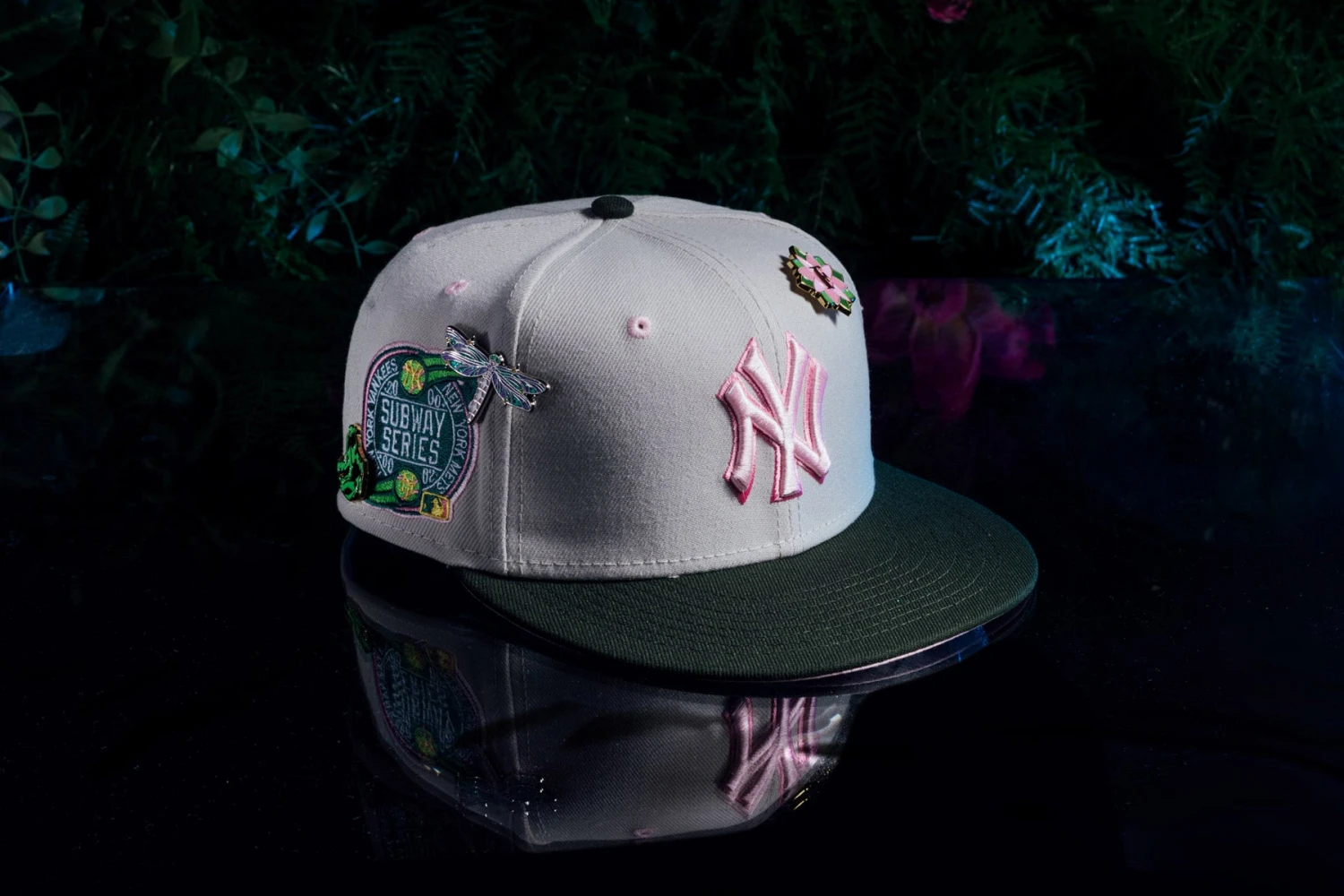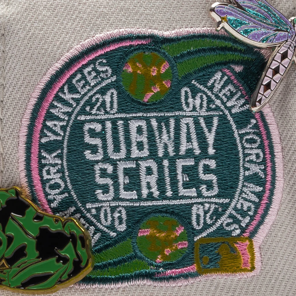 Representing purity, beauty, and prosperity, the FEATURE x New Era 59FIFTY Fitted ‘Lotus’ is inspired by the iconic lotus flower. The silhouette is cut entirely from polyester and incorporates woven eyelets on the crown for a breathable touch. A contrasting flat brim offers further dimension to the design. The silhouette features a raised and embroidered team logo at the face, along with a championship patch at the right side. An embroidered FEATURE script logo can be found at the rear. The hat is finished with three lotus-inspired pins for a finishing touch.