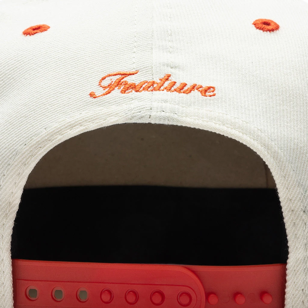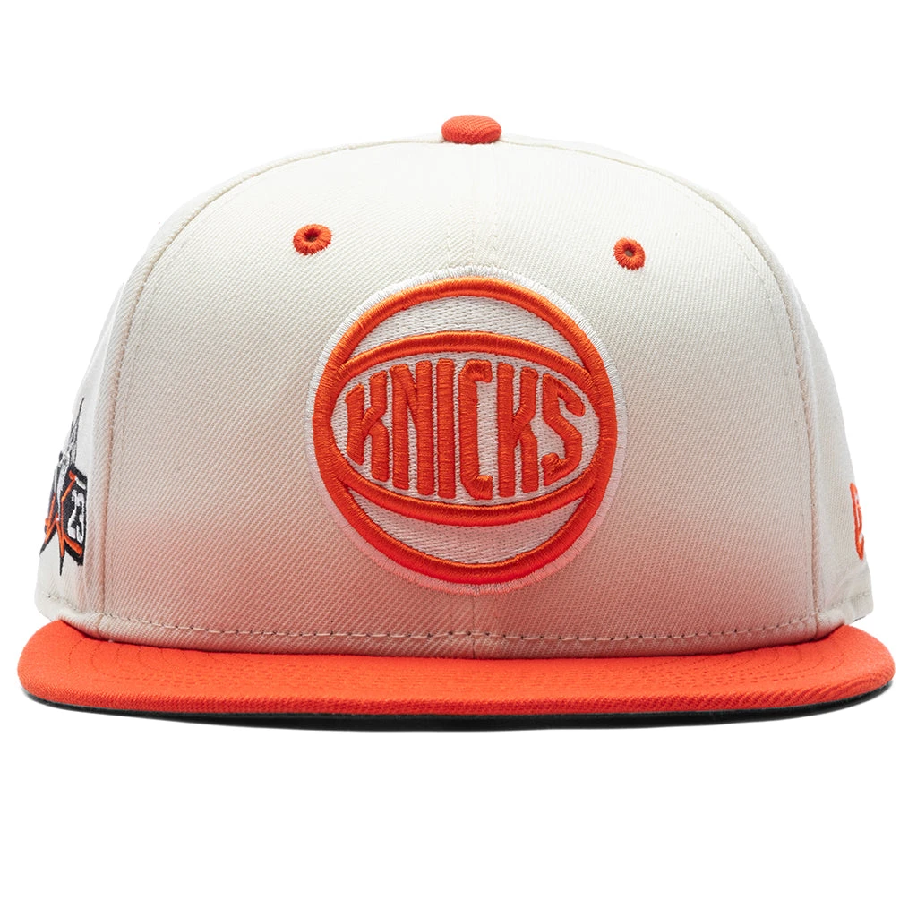 FEATURE joins New Era in spotlighting the iconic New York Knicks on the 9FIFTY Snapback. Composed of polyester, this snapback hat incorporates woven eyelets at the crown for added breathability. A contrasting flat brim is placed, while a team logo is embroidered on the face. An NBA All-Star patch can be found on the right side, while a New Era flag is seen on the left. The adjustable rear closure finishes the rest of the look.