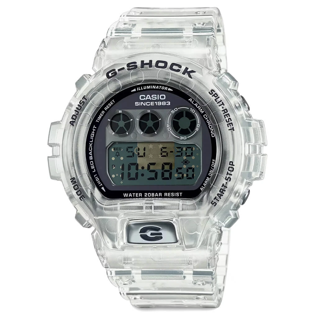 The latest G-Shock silhouette, the 40th Anniversary Clear Remix makes an impression with its stainless steel and resin construction at the case and band. The shock and water-resistant watch incorporates a mineral glass exterior, while the design incorporates features such as a stopwatch, multi-functional alarm, countdown timer, flash alert, LED backlight, and many more features.