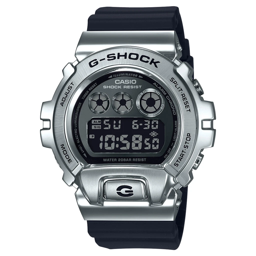 Commemorating the 25th anniversary of the GM6900 model, the latest design fine-tunes the original with stainless steel bezels – combining luxury fashion with streetwear. The watch follows G-SHOCK’s standards with its shock and water-resistant abilities. Flash alert and electro-luminescent technologies complete the accessories composition.