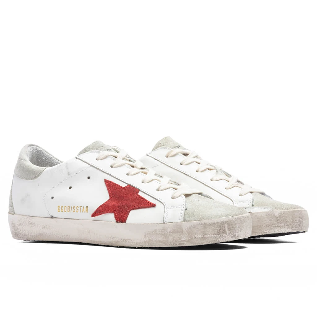 Upgrade your sneaker rotation with the Golden Goose Women’s Super-Star Spur and Heel Sneakers. Taking on a leather upper, the sneaker incorporates suede detailing at the tongue, toe cap, and heel. Scuffs and distressing are also placed throughout. Golden Goose branding resides at the tongue and sides, while a fabric star and rubber outsole finish the look.