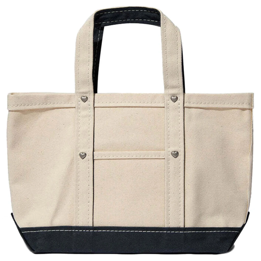 Perfect for any collection, the Heavy Canvas Tote Small is functional yet elevated. Composed of duck canvas, the bag features heart-shaped metal rivets along with dual handles. An inner pocket is placed with a woven label, while the embroidered branding and imagery at the front completes the remainder of the design.