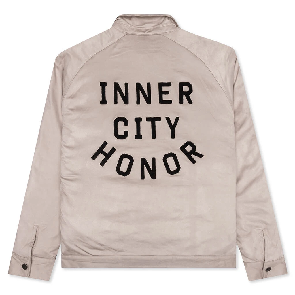 Add a new outerwear silhouette to your rotation with the Honor The Gift Sueded Band Jacket. Cut from faux suede, the design features a quilted lining for added comfort. Embroidered branded patchwork and art is seen at the chest, while the full-zip closure secures the design.