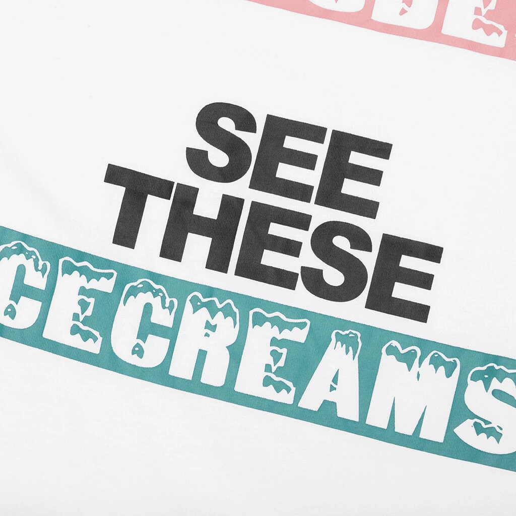 Screen-printed branding and graphics are seen within the front and rear of the Icecream Ice Cubes S/S Tee. This cotton-cut design is finished with a ribbed neckline.