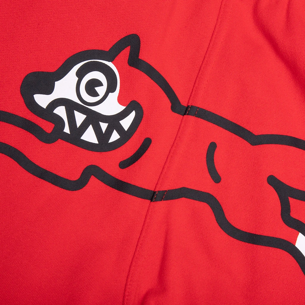 Elevate the traditional graphic joggers with Icecream’s Jogging Dog Jogger. Featuring a heavy-weight fleece construction, this comfortable silhouette includes an elastic drawcord waistband with elastic cuffs. The drawcords have been custom-tipped, and an additional rear zipper pocket provides further functionality. The screen-printed running dog motif at the front finishes the aesthetic.