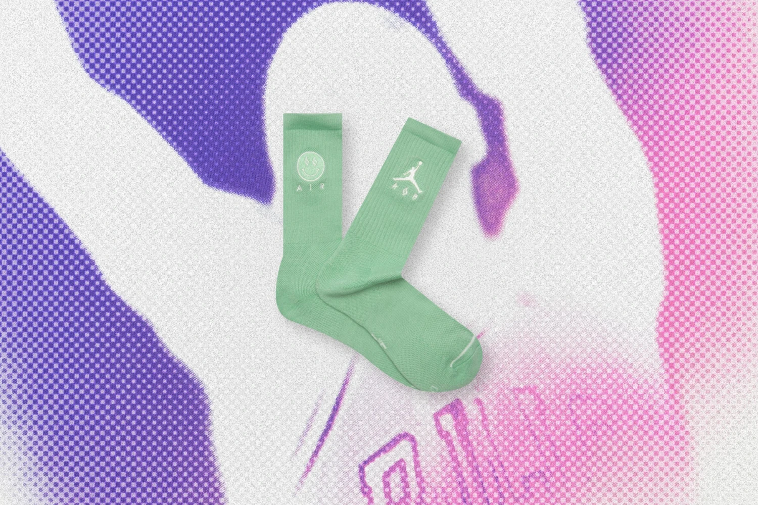 The Air Jordan x J Balvin Legacy Socks are perfectly cut from polyester, spandex, and nylon resulting in a comfortable experience. The silhouette includes a reinforced heel and toe, providing optimal durability and comfort. The strategically placed mesh adds a breathable touch.