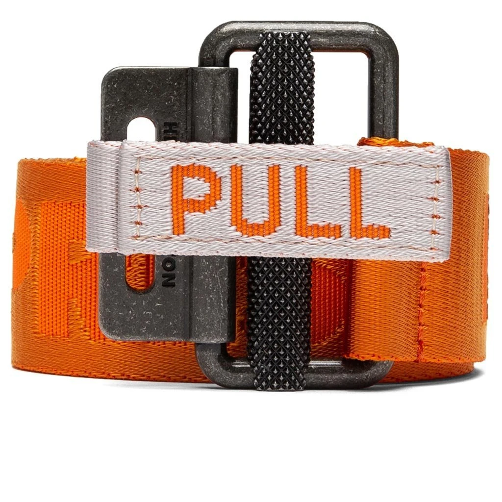 Heron Preston is the true embodiment of an artist born of the post-internet generation. Multi-faceted and genre-bending, he has become a cultural icon in youth culture, known for his bold aesthetics. His impressive bodies of work is a commitment to innovation, experimentation and unpredictability. Pictured is the Heron Preston KK Tape Belt in Orange/Medium Grey.
