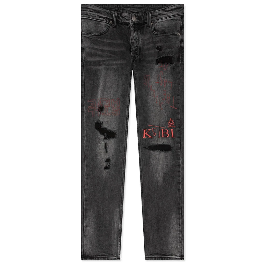 The Van Winkle jeans from Ksubi have become a staple design desired by many. Featured in the Maniac colorway, the jeans feature signature details including the iconic tag and cross-stitch at the rear. Its comfortable cotton and elastane base includes distressed details, a five-pocket design, and a mid-rise fit.