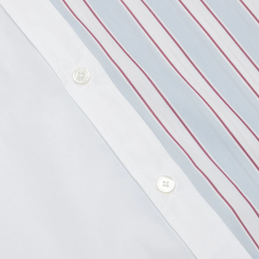 The French elegance seen within the Spring Collection is prevalent within the Patchwork L/S Shirt. Asymmetrical designs contrast the varying cotton construction and length. Made in Italy, the long sleeve consist of a button closure, pressed collar, and removable extra button placket.