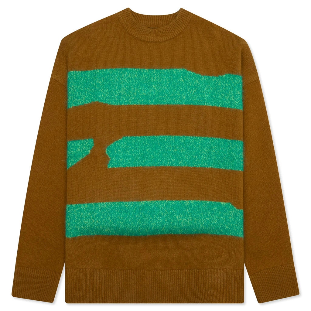 Crafted from a blend of wool and additional high-quality materials, the Long Sleeve Knit from Ader Error upgrades the traditional sweater. Featuring large color-blocked stripes, ribbed detailing makes an appearance at the neckline and hem for an additional detailed touch.