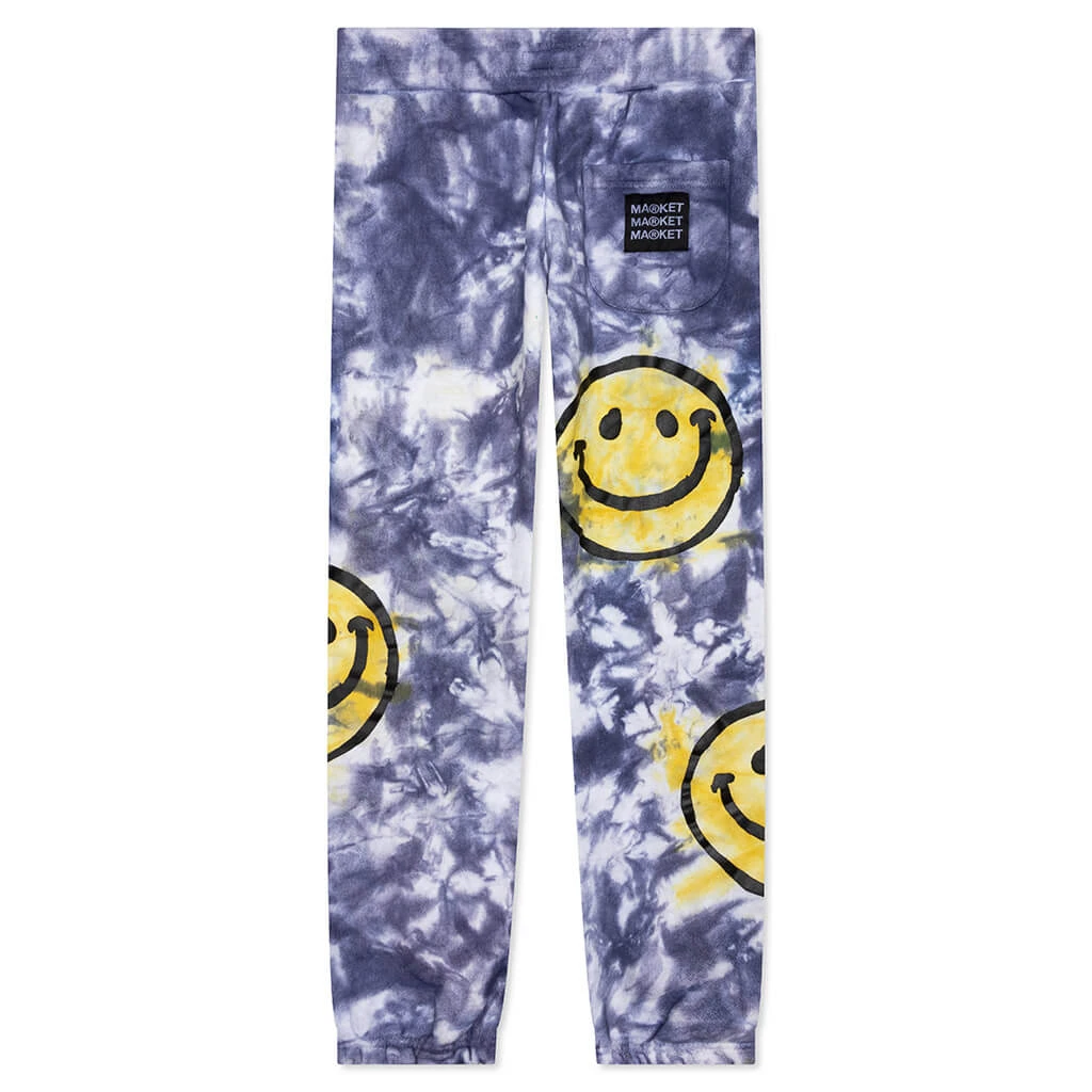 Legendary streetwear brand Market introduces the Smiley Sun Dye Sweatpants. In collaboration with Smiley, the silhouette is cut from cotton and features an elastic waistband and cuffs. In-seam side pockets are placed along with a rear welted pocket. The tie-dye wash and screen-printed Smiley graphics tie together the finish.