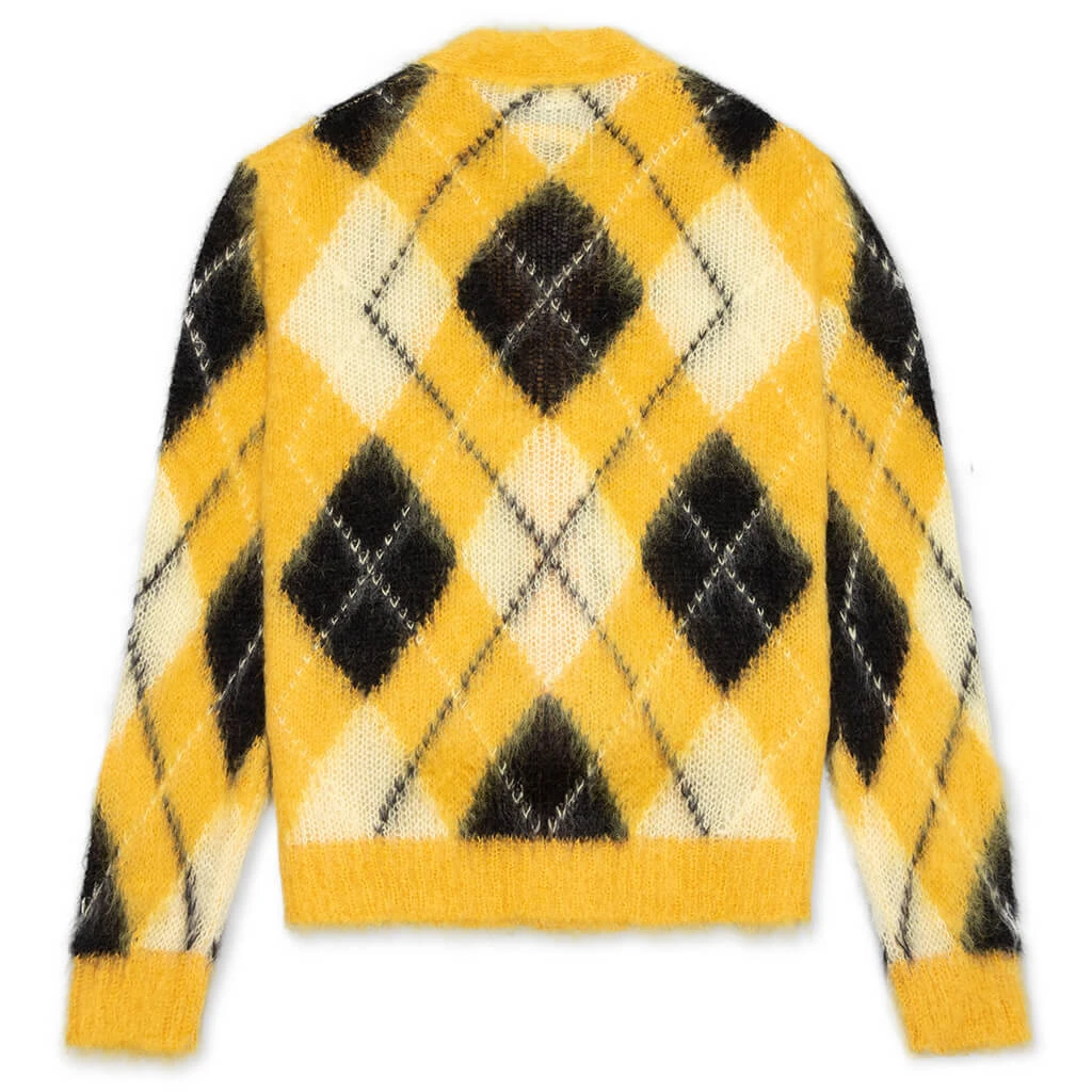 Italian high-end label Marni introduces the Brushed Wool Blend Cardigan. Crafted from authentic mohair, the design features a long-sleeved cardigan silhouette with a v-neck collar and a contrasting front button closure. An all-over argyle pattern is placed throughout, while rib-knit detailing at the cuffs and hem tie together the overall elevated silhouette.
