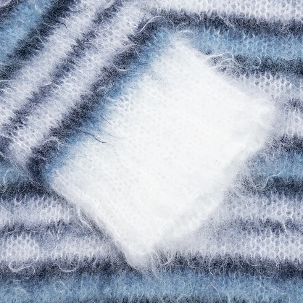 Marni’s premium aesthetics make an appearance in the Cardigan. Crafted from mohair and polyamide, the elevated silhouette incorporates a contrasting collar along with a front button closure. A horizontal stripe pattern is placed throughout, making an additional statement within the fuzzy knit design.