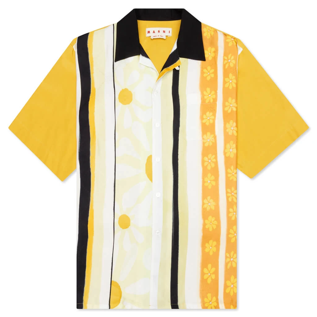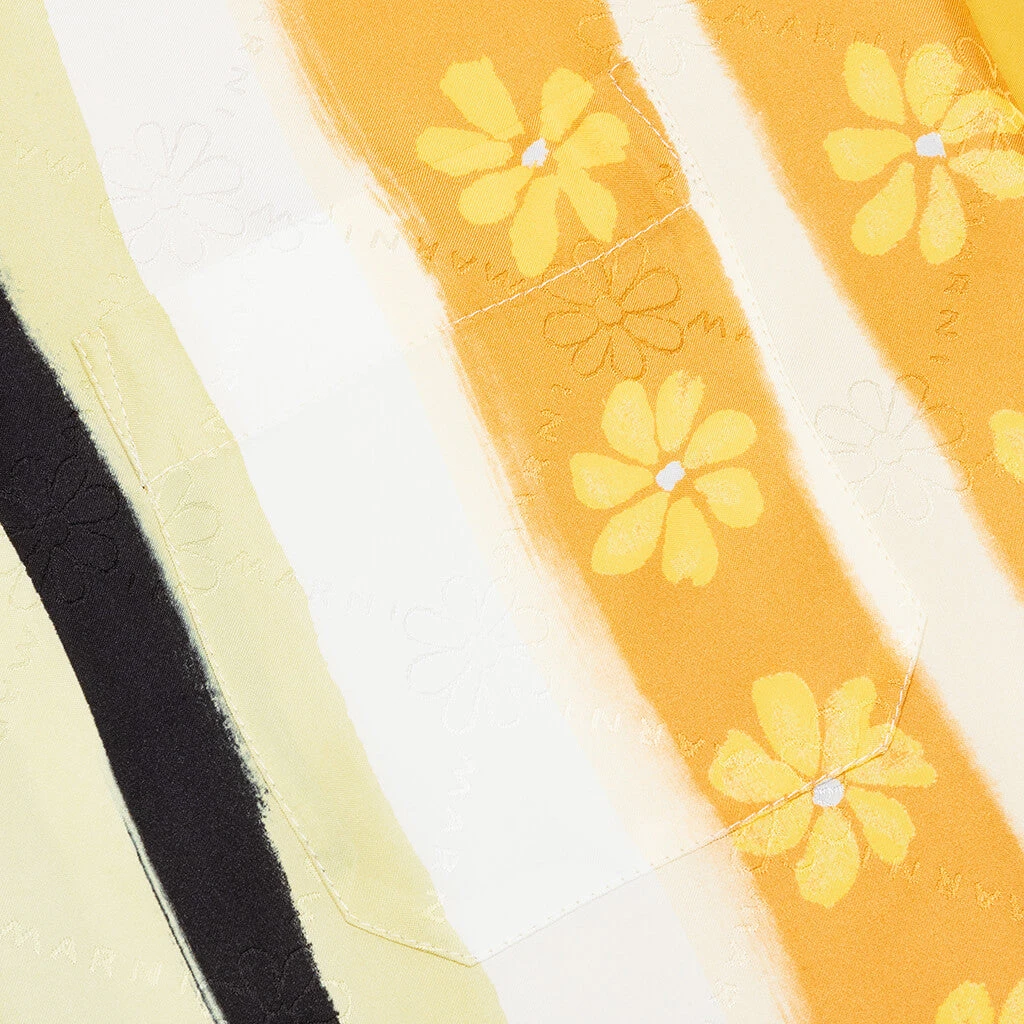 Premium apparel label Marni introduces the Viscose and Cotton Shirt. This premium design spotlights a viscose and cotton construction that results in its unique aesthetic. The combination of prints makes up the exterior, offering a notable impact. The button-up closure leads to a spread collar, finishing the design.