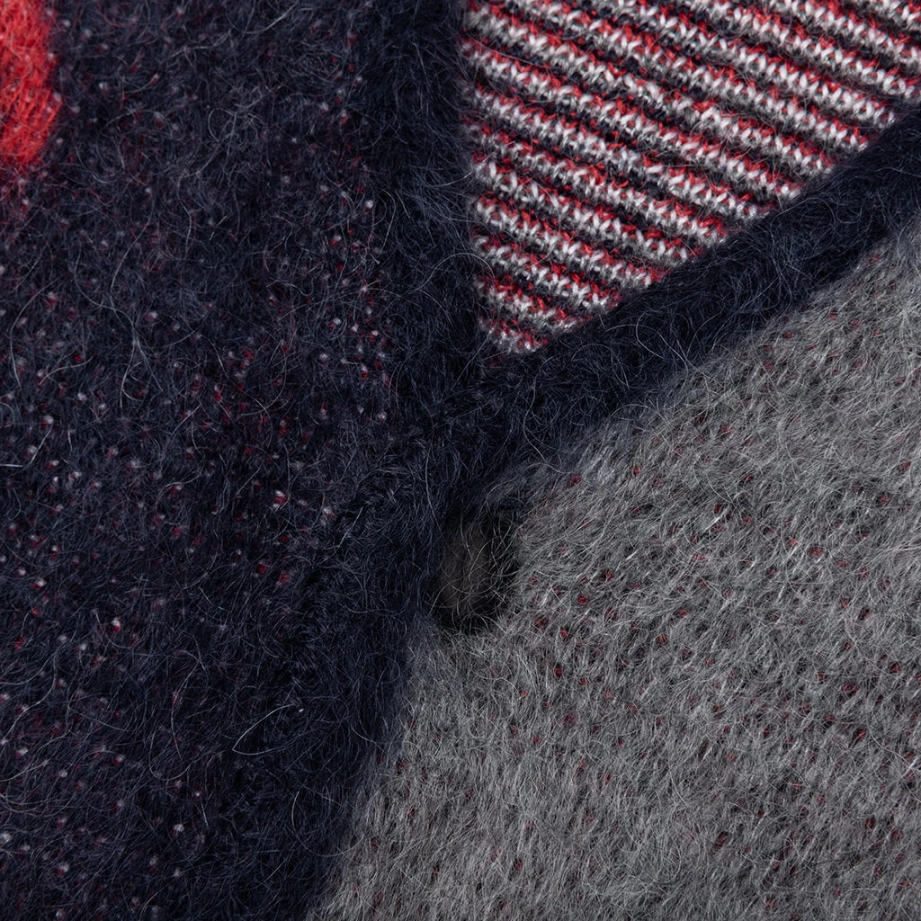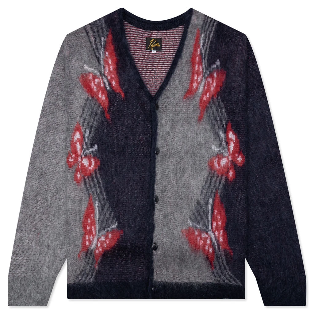 Add a new cardigan to your collection with the Needles Mohair Cardigan Papillon. Cut from mohair, the silhouette takes on a front button closure in addition to a v-neckline. Ribbed detailing resides at the cuffs and hem, while the paneled construction offers further dimension. The intarsia graphics complete the design.