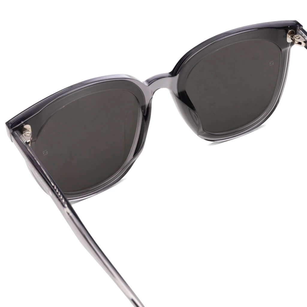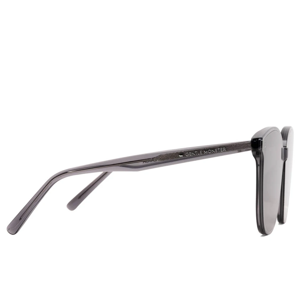With a modern take on the classic sunglass design, the Gentle Monster MYMA-G1 features a fluid silhouette at the front of the grey frames, while two silver bullet-shaped pins are placed along with the frames. 99.9% UV protection is provided while an engraved logo is included in the templates.