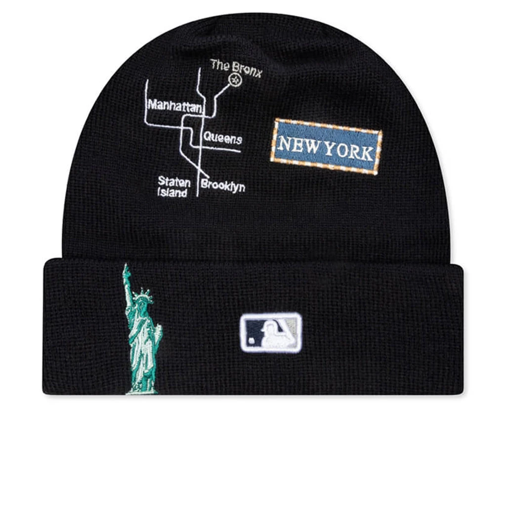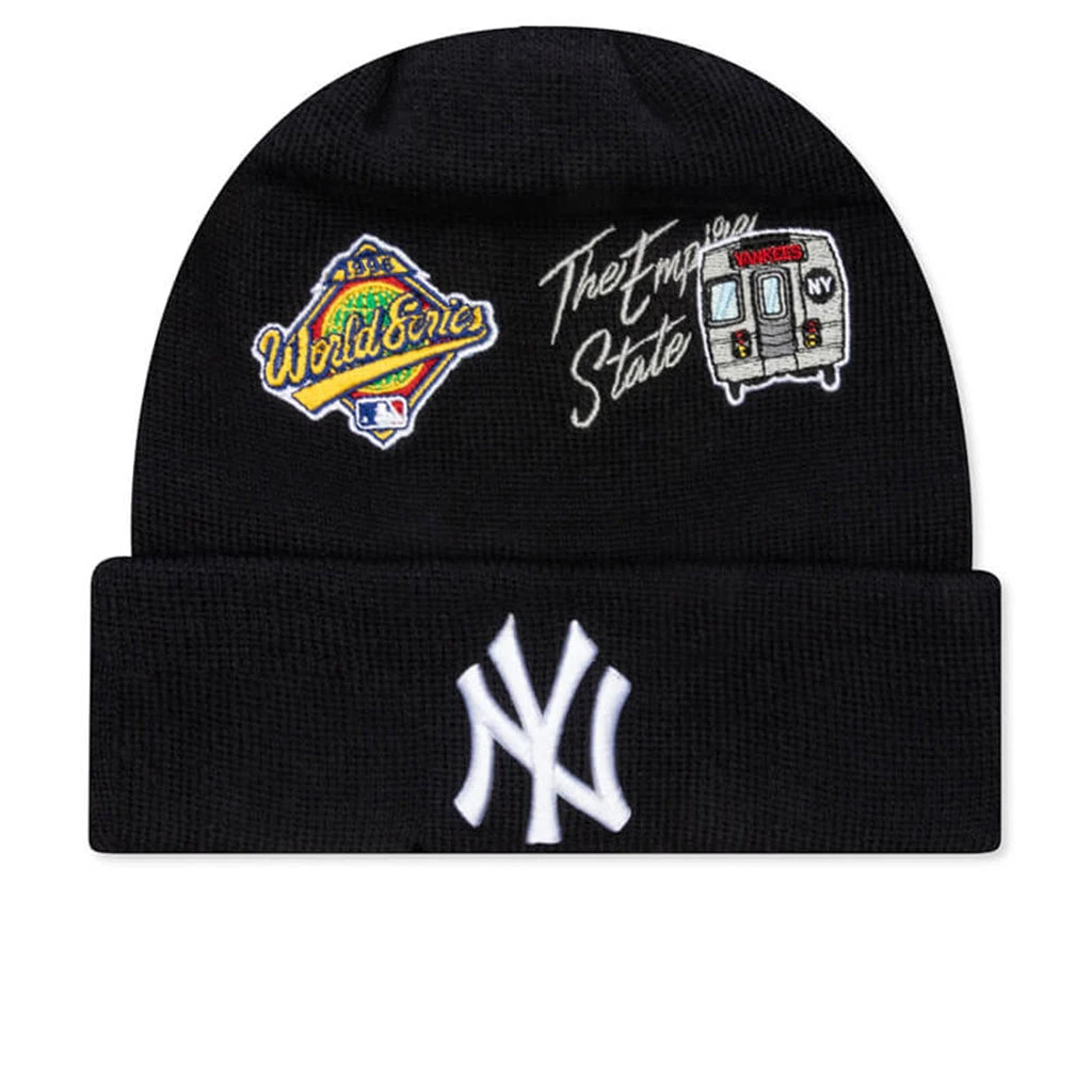 Represent the New York Yankees with pride with the New Era City Transit Knit Beanie. Crafted from acrylic, the beanie features a stretch fit that includes a single-fold design. Embroidered graphics with raised details are placed at the front and back of the design, including Yankees branding as well as signature New York motifs.