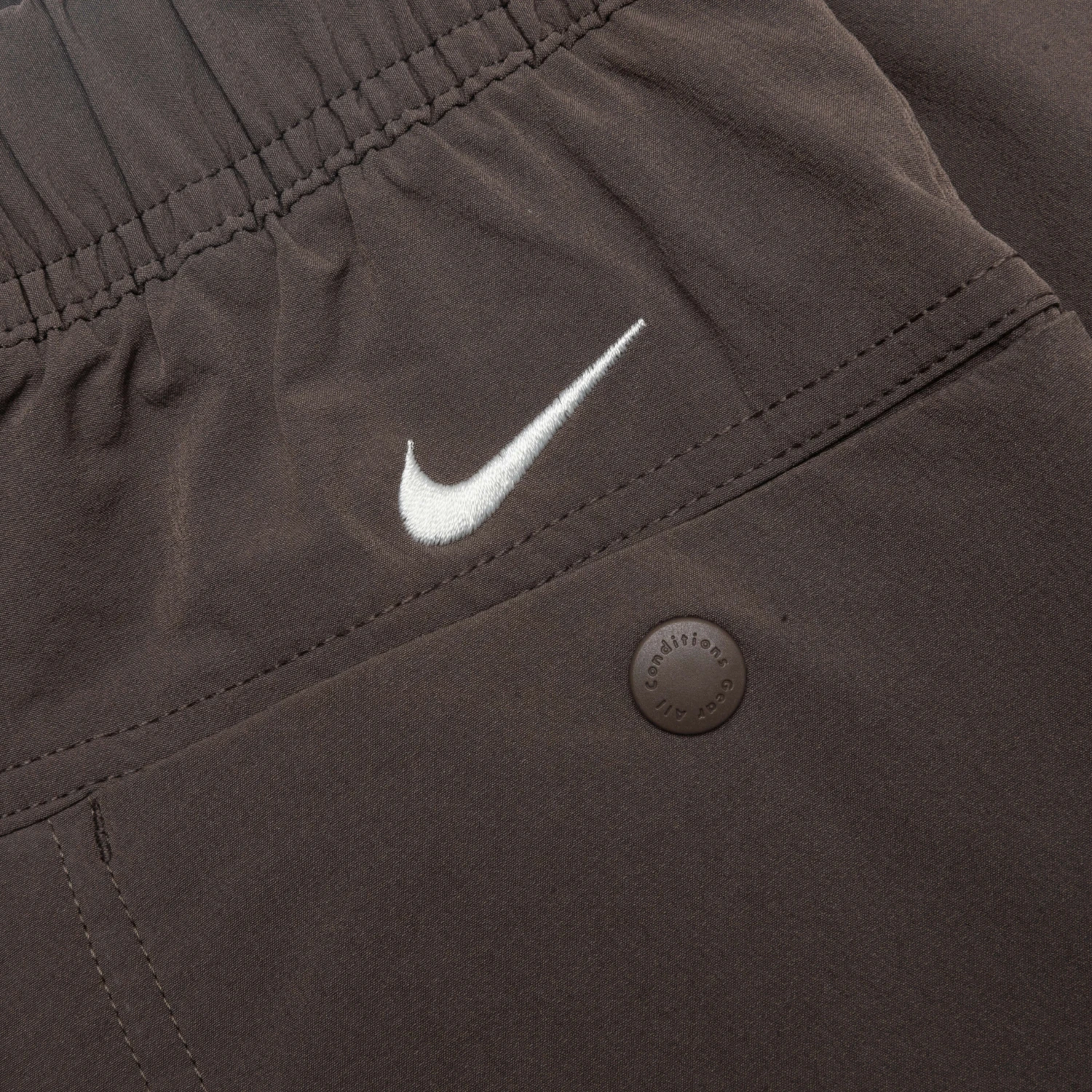 The Nike ACG ‘Sunfarer’ makes a statement in any apparel rotation. The hiking pants are composed of a blend of polyester and spandex, also featuring a lightweight and water-repellent aesthetic. Abrasion-resistant panels are seen, while the targeted breathability zones add a comfortable touch. The elastic waistband is integrated with a webbed belt, offering a secure and comfortable fit. The zippered side pockets and ergonomic easy-access hip pocket provide a convenient touch. The elastic cuffs and ACG carabiner at the belt loop wrap up the look.