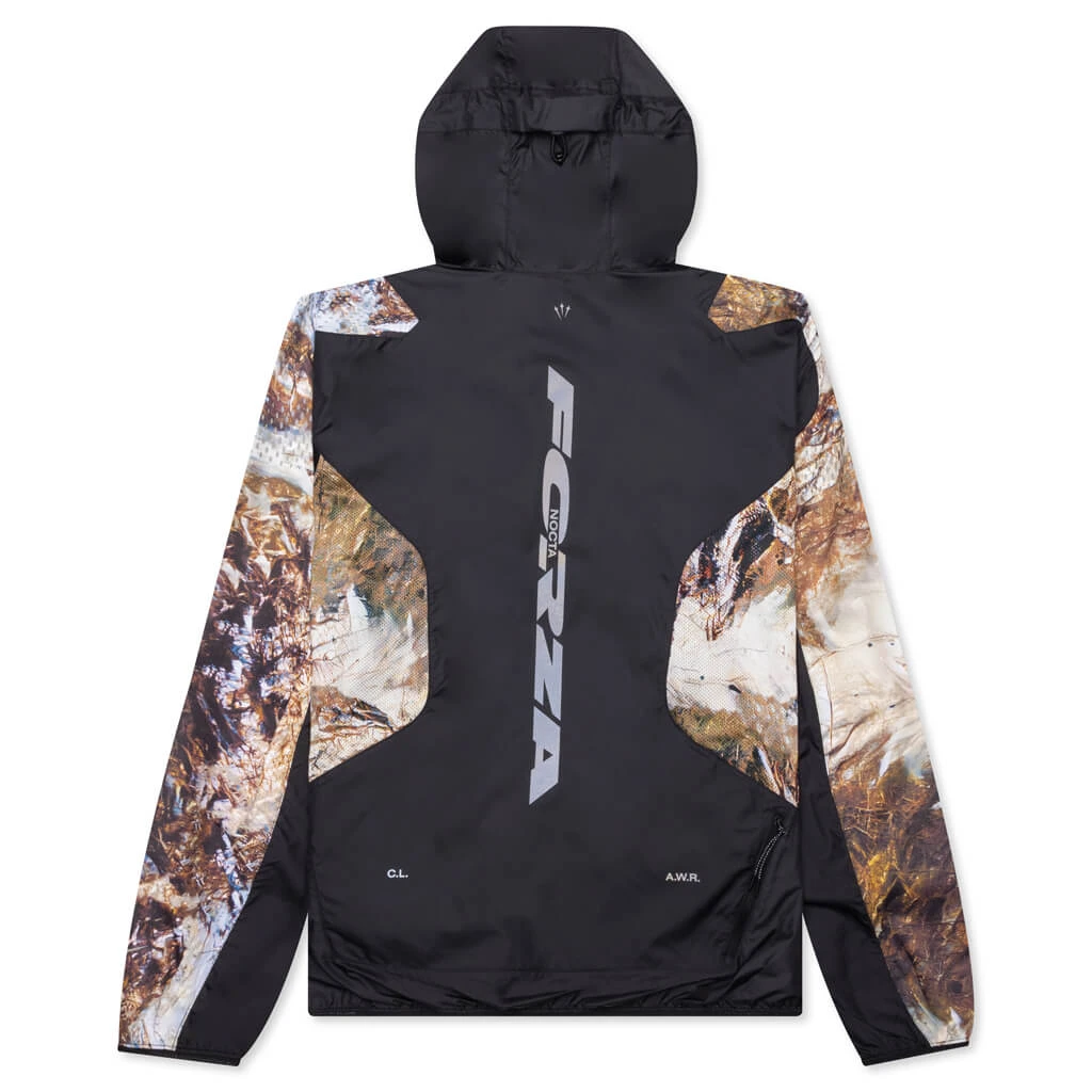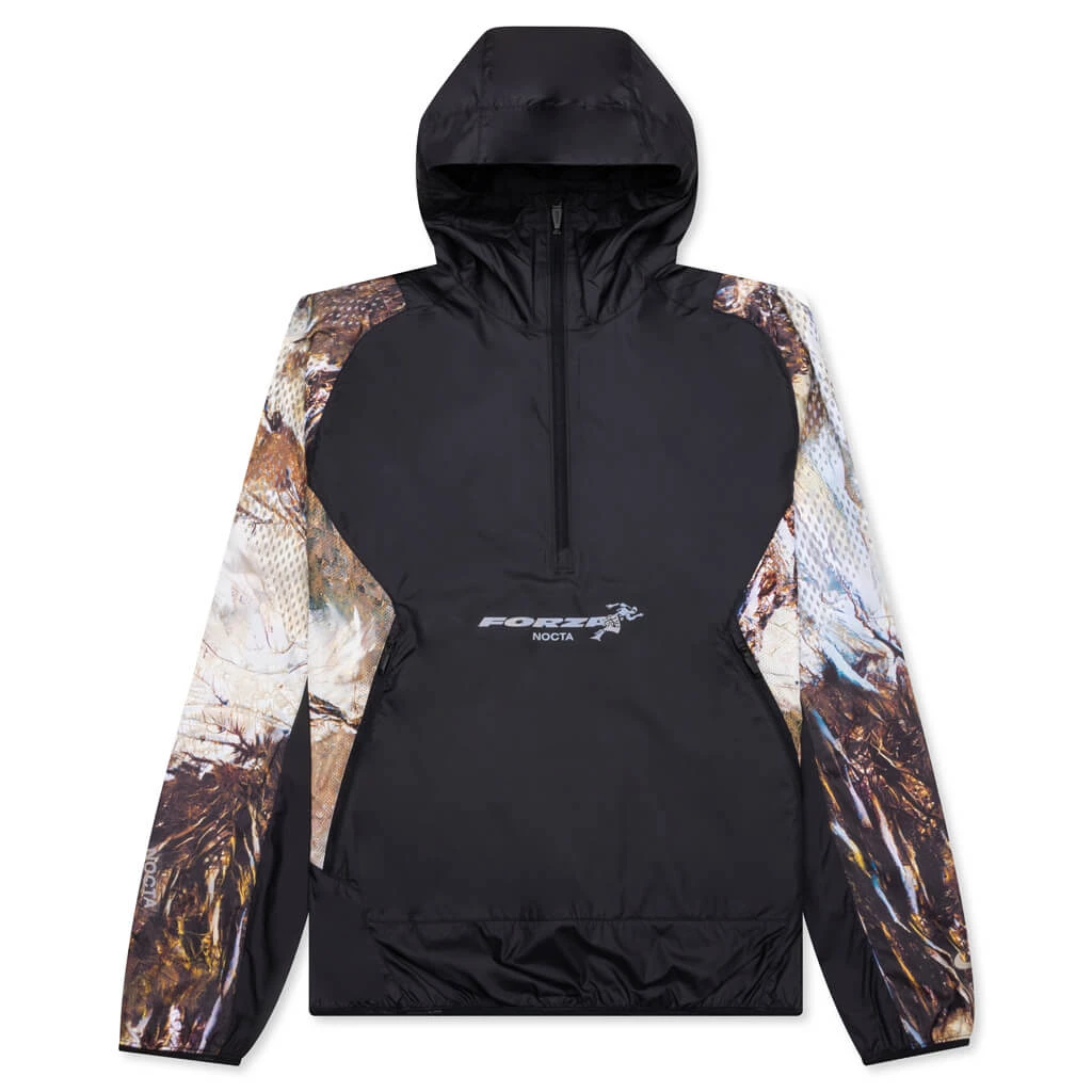 Elevate your style and performance with the NOCTA Men’s Running Jacket, a true embodiment of NOCTA’s unique blend of fashion and artistic integrity. This standard-fit jacket features a distinctive camo print and is crafted from durable 100% Polyester material, ensuring both style and endurance. Its reflective branding enhances visibility during your performances, while the inclusion of a branded packable storage bag and carabiner adds convenience to the mix. Hand pockets with secure zippers provide storage for your essentials, while the mesh underarm lining promotes breathability.