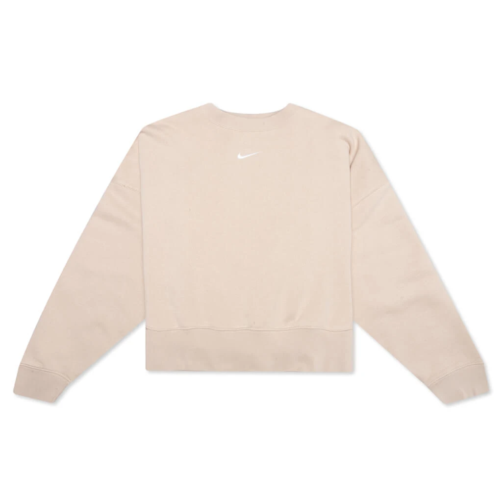 Upgrade your Nike apparel collection with the Sportswear Collection Essentials Women’s Oversized Fleece Crew Sweatshirt. Featuring a blend of cotton and polyester, the design spotlights an oversized fit. Made for a slight crop, the design includes a small embroidered Swoosh at the chest. Ribbed detailing placed at the neckline, cuffs, and hem completes the look.