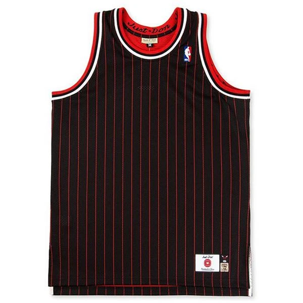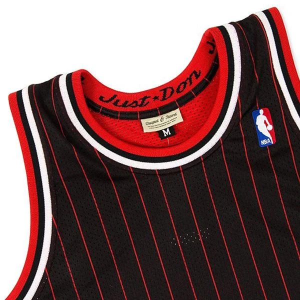 Founded in 2011 by Don C, Just Don is a luxury sportswear brand known for reinventing classic Mitchell & Ness apparel and accessories using high quality materials and craftsmanship. Pictured is the Just Don No Name Jersey in Chicago Bulls.